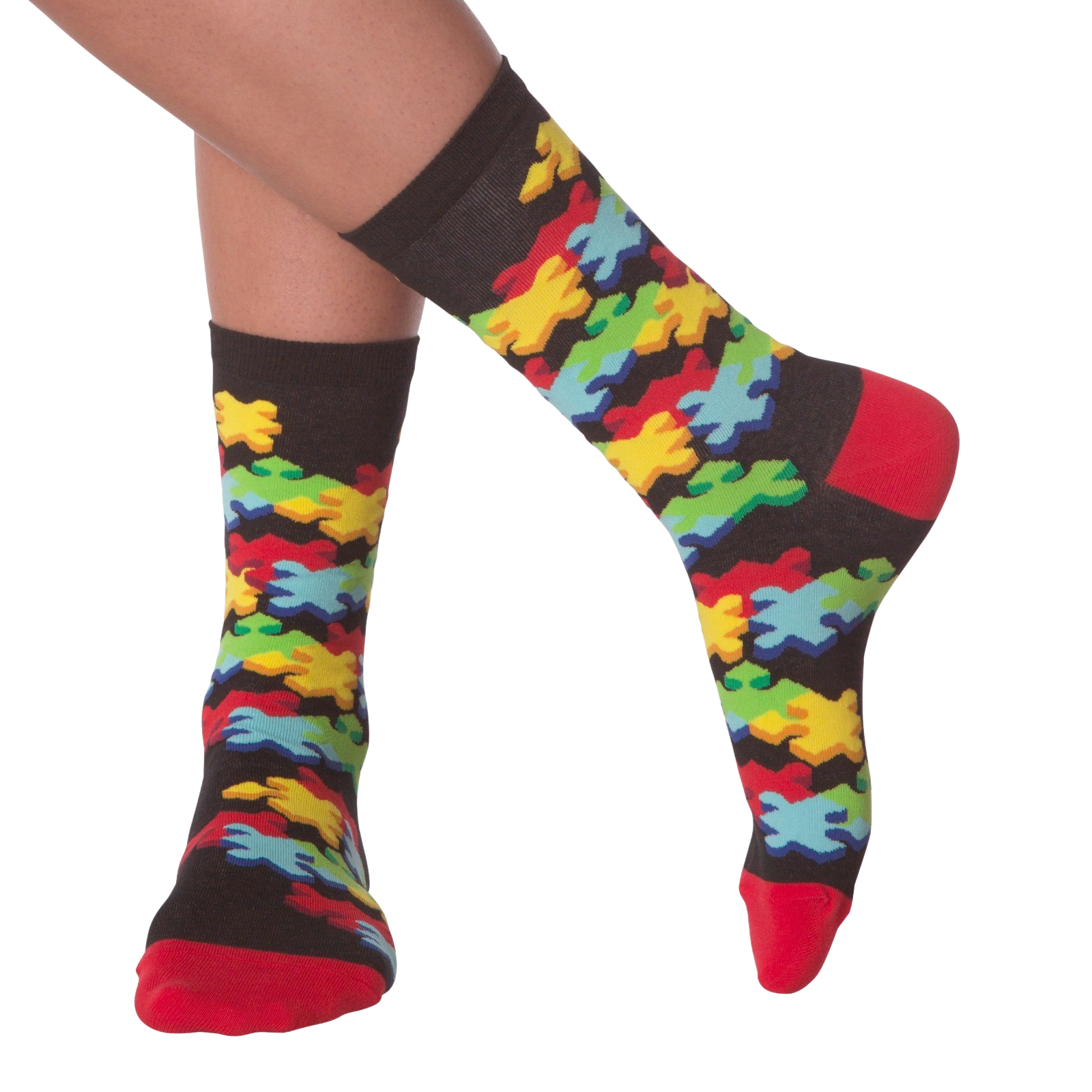 Get ready to piece it all together, literally! These 3D Jigsaw socks feature a vibrant explosion of colorful puzzle pieces in red, blue, yellow, orange, green, and light blue on a black background. These women's crew socks will make you the talk (and envy) of the gaming table. Get ready to go on a puzzle adventure with every step, whether you're playing board games, video games, or just trying to solve life's everyday mysteries.