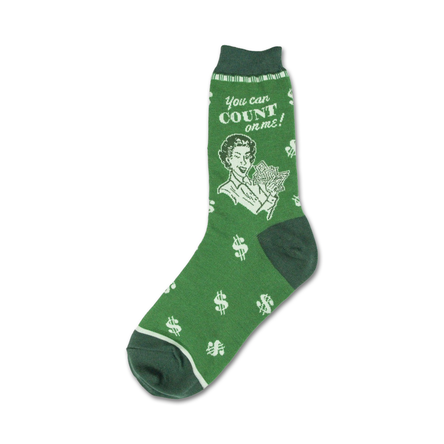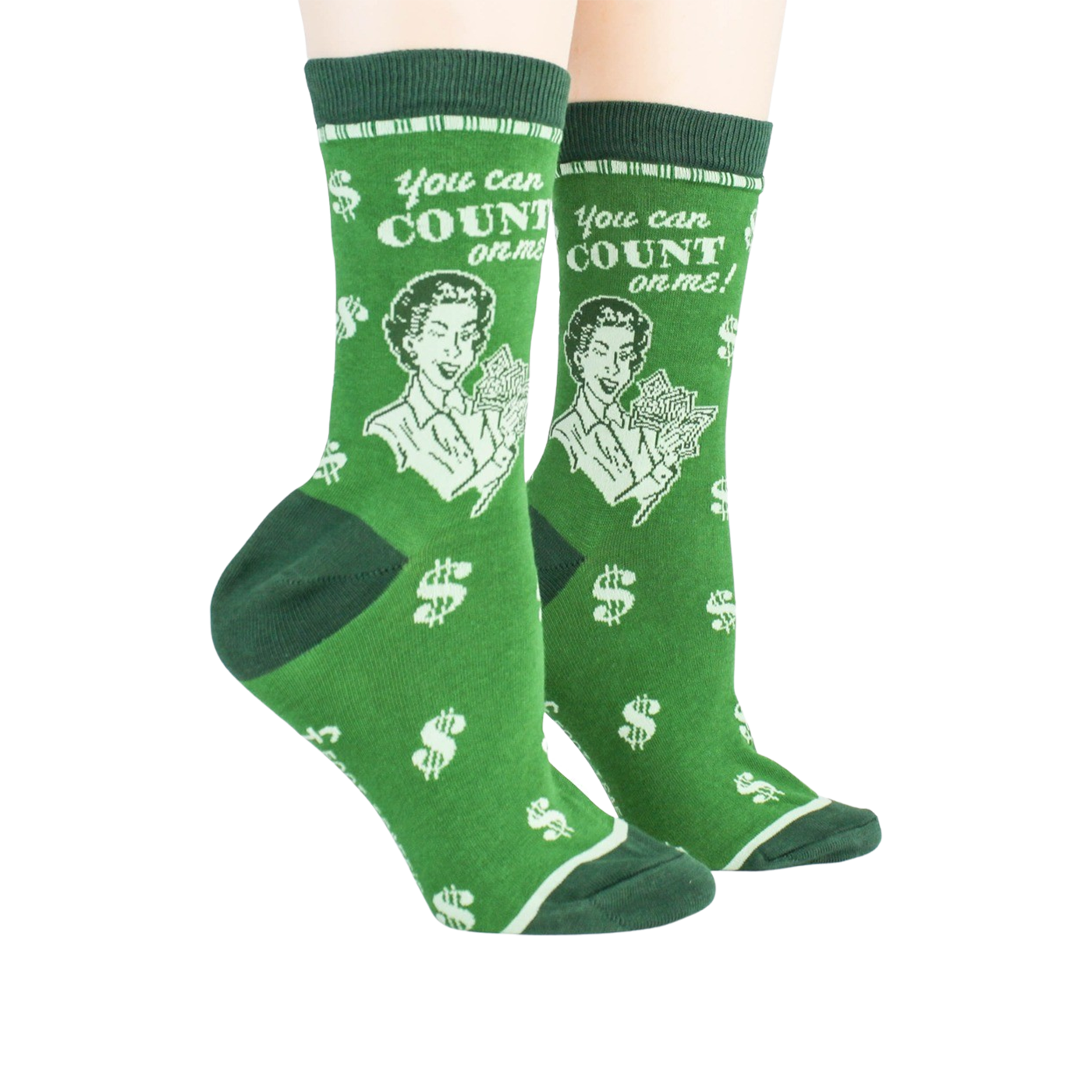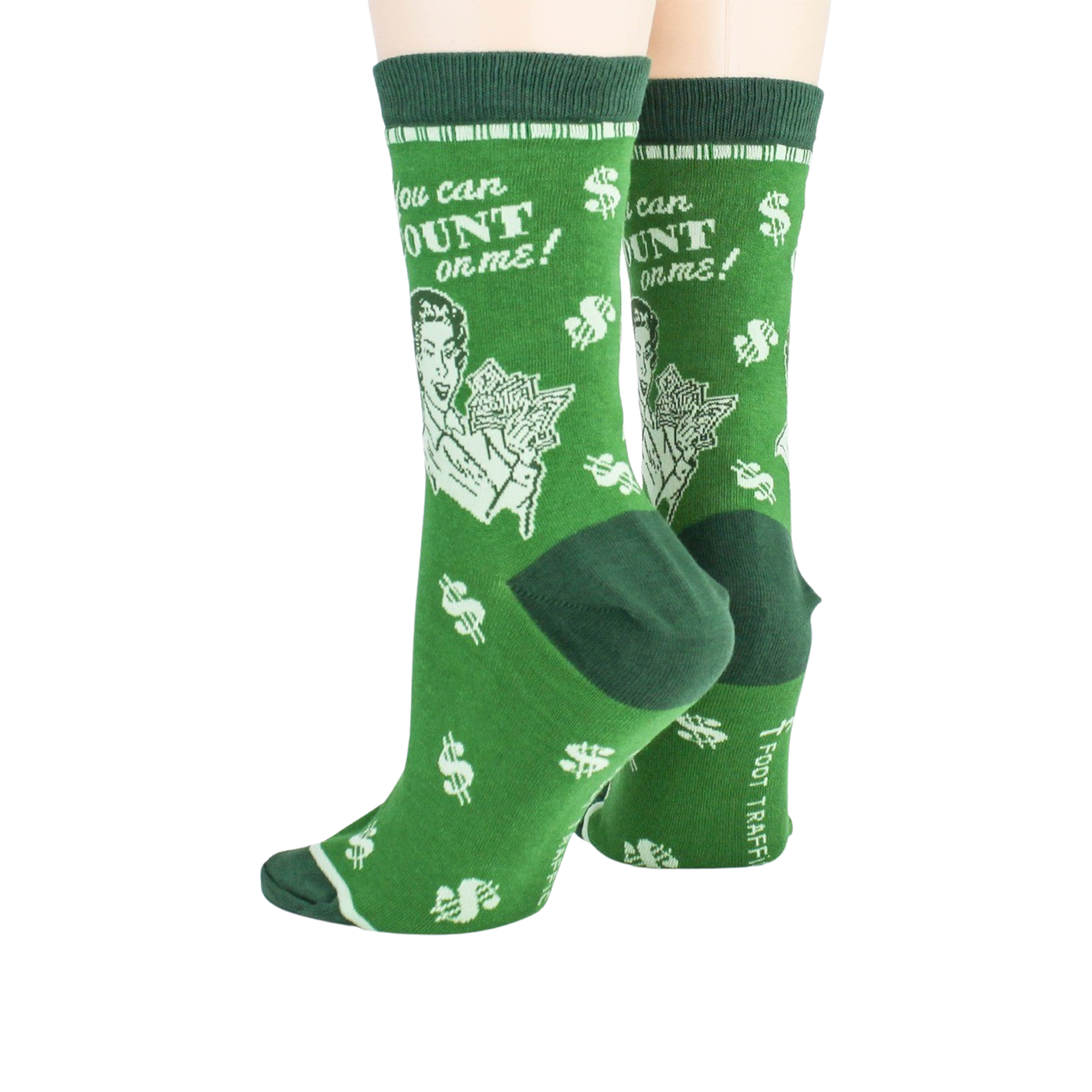 Accountants are the "money masters." They crunch numbers, balance books, and keep businesses afloat. These socks pay tribute to the accounting divas and data divas with a fun, green and white dollar bill pattern and the image of a fabulous accountant with lots of money. These socks will help you stay focused on your cash flow while keeping your business casual attire fun and stylish.