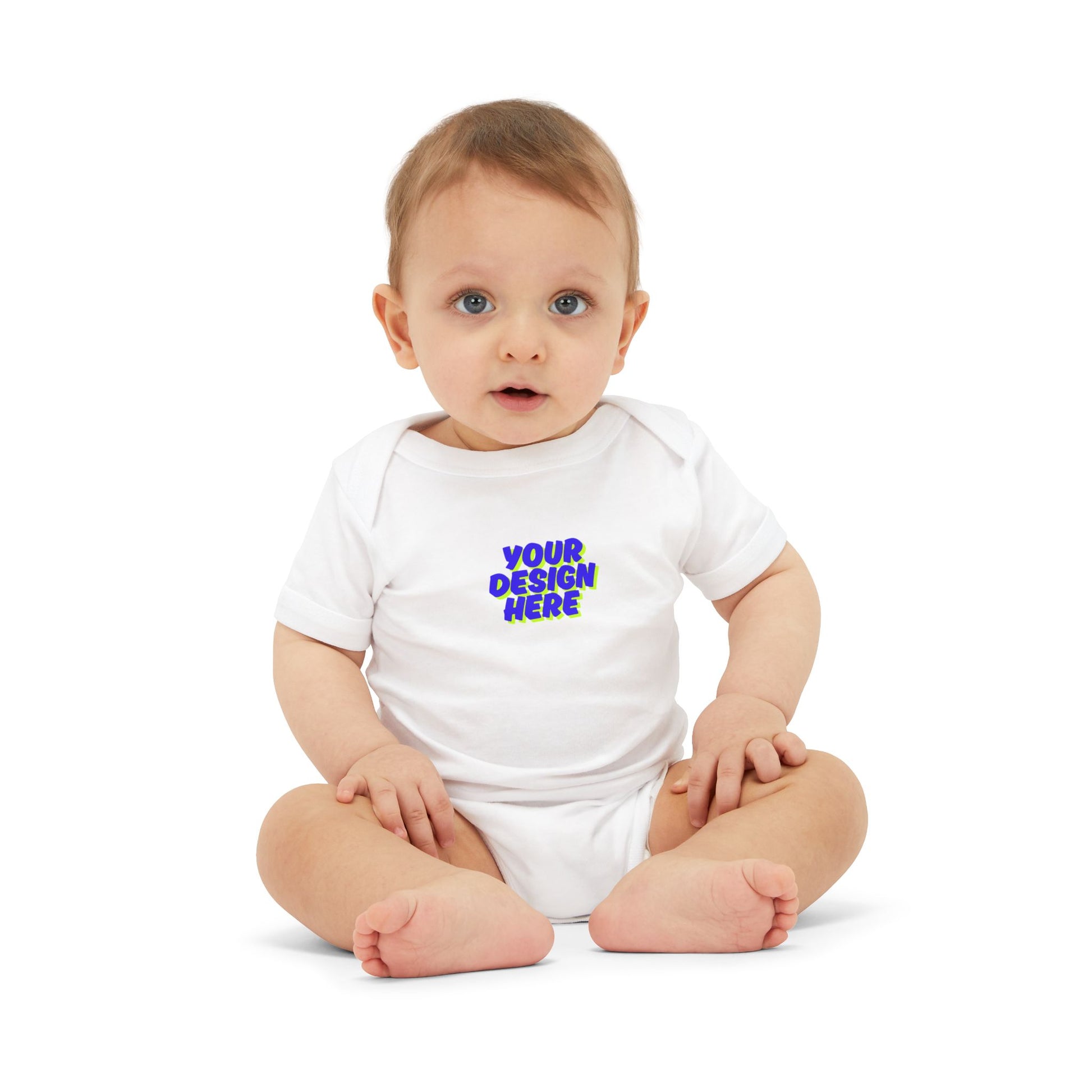 A customizable baby onesie made with 100% Airlume combed and ring-spun cotton jersey for total comfort. The expandable envelope neck and snap leg closure make changing a breeze. Perfect for parents looking for a socially conscious and comfortable option for their little one. Ideal for baby showers, newborn celebrations, and everyday wear.