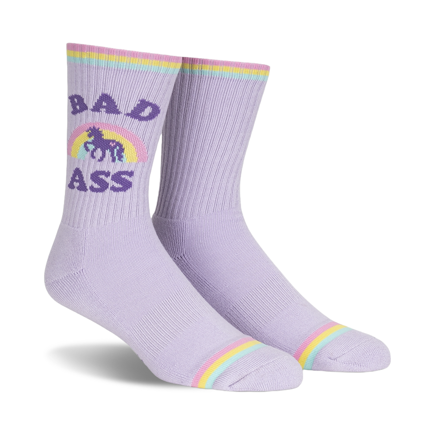 Where myth meets comfort, these stylish threads are adorned with a valiant unicorn posed gallantly before a radiant rainbow. Perfect for both lords and ladies, these socks aren't just a splash of color—they're a declaration of daring. Slip into a pair and let the world know: here walks a creature of sheer, unapologetic fabulousness. Ideal for those who believe every day deserves a touch of magic and a dash of rebellion.