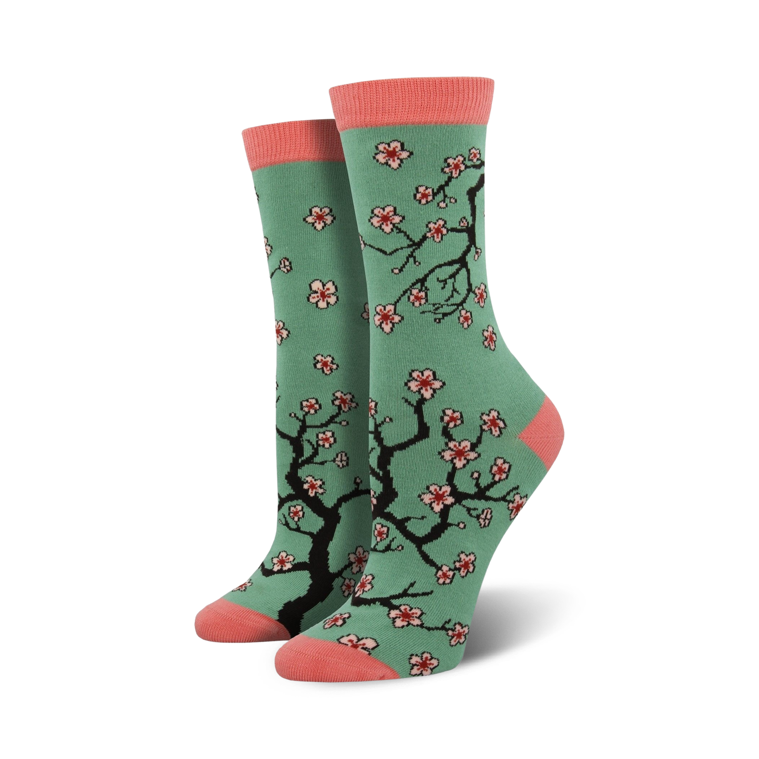 Prepare to meet your match in these light green Bamboo Cherry Blossom socks complete with bright pink toes, heels, and cuffs that'll have you hopping like a bunny. Best of all, you won't need to travel to Japan to see the cherry blossoms in bloom, these socks will bring the cherry blossoms to you!