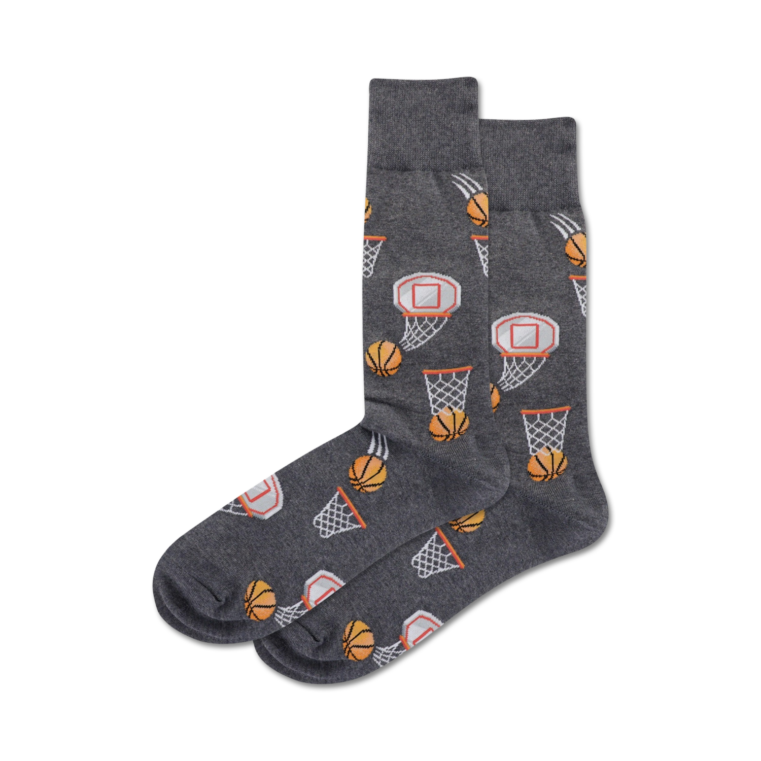 Who says socks have to be boring? These basketball socks are a slam dunk, whether you're hitting the court or just dunking Oreos. With their allover pattern of basketballs swishing through hoops, these socks are sure to make you the MVP of sock fashion. And they're so comfy, you could wear them all day long. You'll be saying "net" problem!