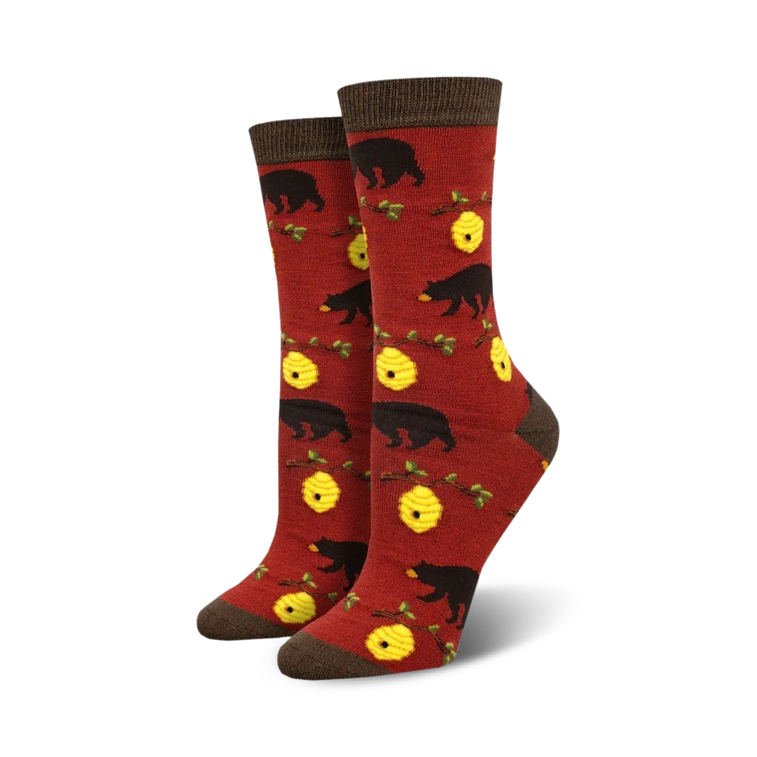 Bears and Bees Bamboo Crew Socks: These aren't your average "beary" boring socks! Our paw-some black bear and honeycomb pattern will liven up your look and put a "beary" big smile on your face. Whether you're buzzing around town or relaxing in your "bee"-utiful backyard, these socks are sure to "bee" a hit. So go ahead, embrace your wild side and let these socks "bear" your sole!