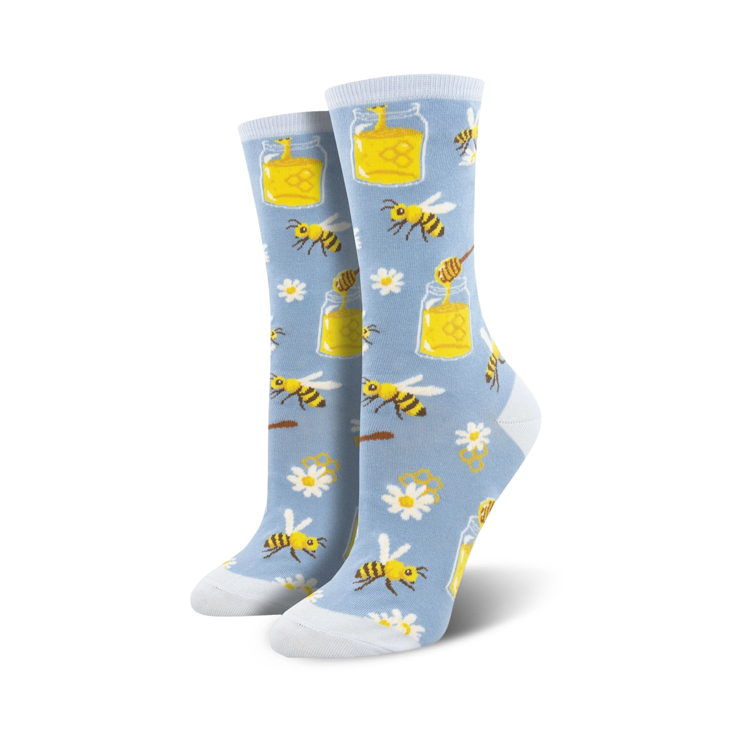 Buzz into springtime with our "Bee My Honey" socks! Adorned with a sunny pattern of bees, honey jars, and white flowers, these comfy crew socks will brighten up your day. Queen Bee status loading...