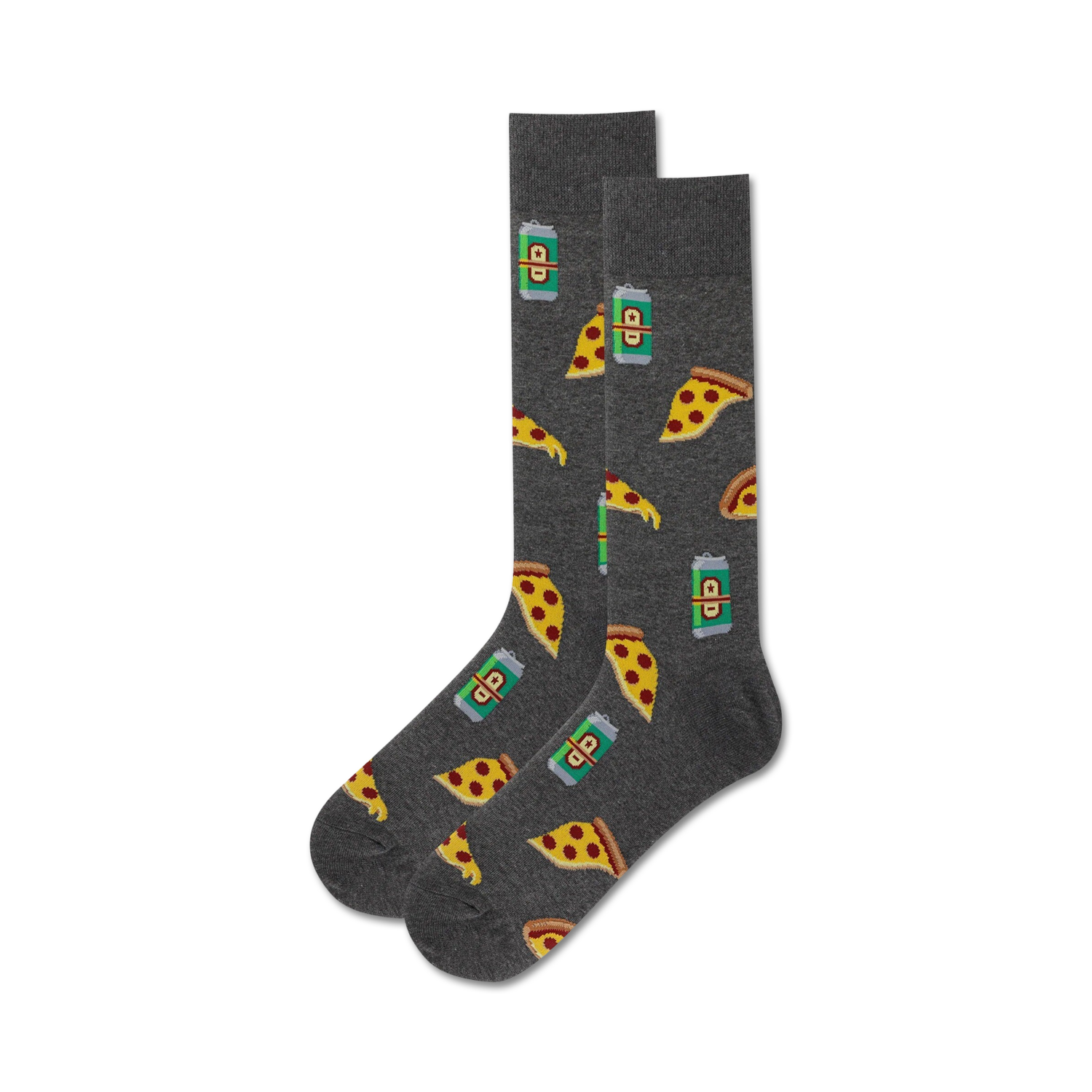 Are you a beer and pizza enthusiast? Do you want to show off your love for these two delicious treats? Then these Beer and Pizza Crew Socks are perfect for you! With their vibrant gray color and pattern of frothy beer cans and cheesy pizza slices, these socks are sure to turn heads wherever you go. They're also super comfortable, so you can wear them all day long without having to worry about your feet getting tired.
