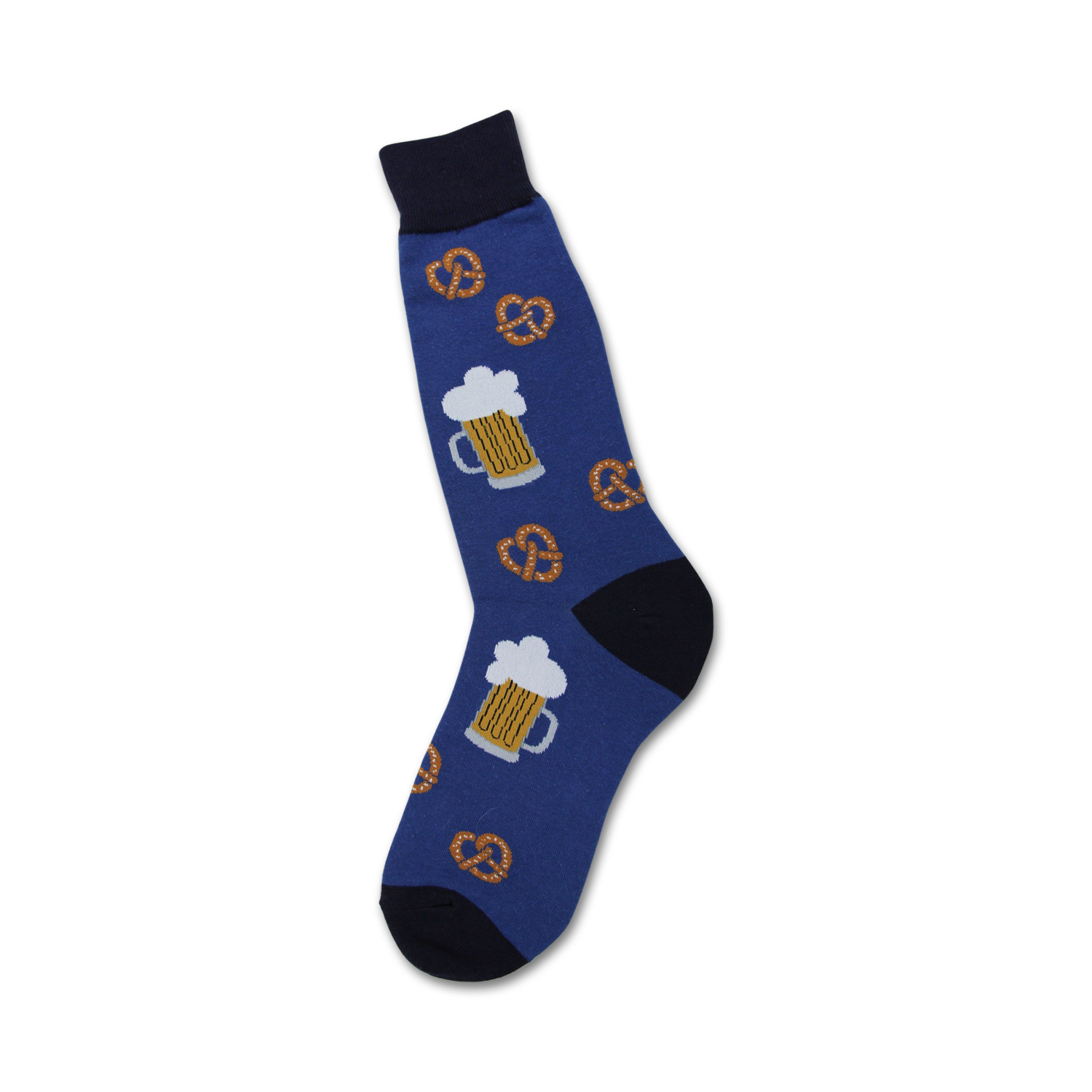 Calling beer enthusiasts with a taste for pretzels and fun! Our Beer and Pretzel socks will take your feet on a delicious journey with their vibrant blue pattern of frothy beer steins and salty pretzels. These crew socks scream Oktoberfest and won't leave you feeling thirsty. Let your feet do the talking and show off your love for the perfect bar snack and thirst-quencher combo!