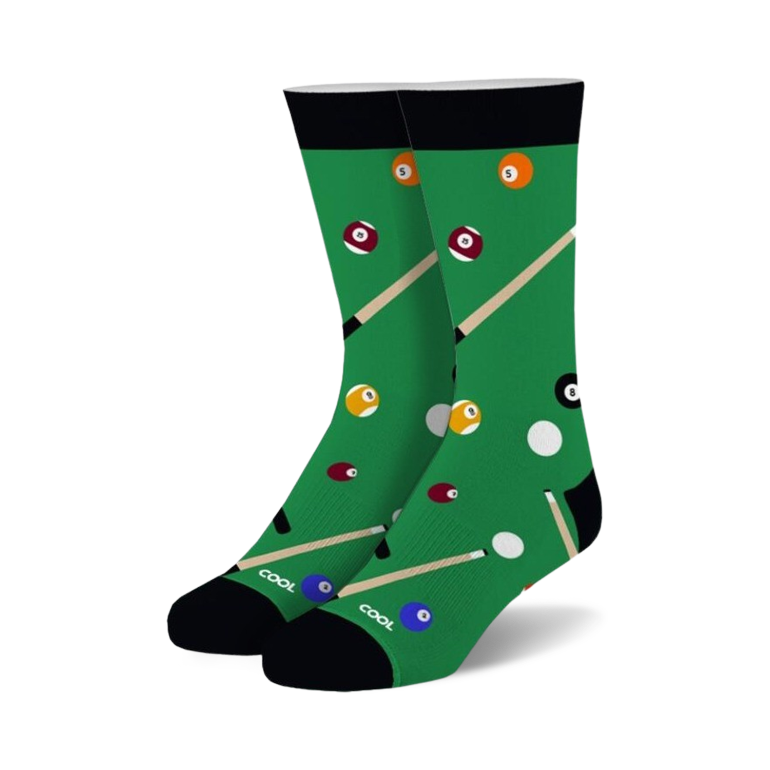 Cue the fun and pocket these billiard ball and pool cue stick socks! The striking green and colorful billiards patterns on these crew socks are a hole-in-one for any billiard lover. Perfect for men and women alike, they're sure to make a splash at your next game. A perfect gift for any billiards enthusiast!
