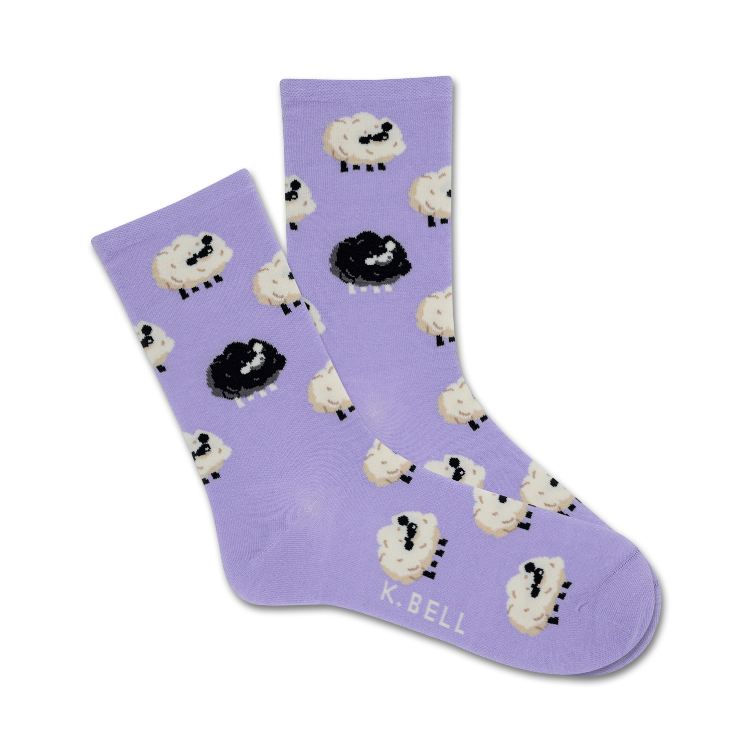 In the world of socks, conformists need not apply. For the quirky and fun-loving, our "Black Sheep" socks boast a vibrant purple canvas adorned with a flock of charming white sheep - all gazing adoringly at their one black companion. Dive into a world of wooly wonder and show off the rebel within!
