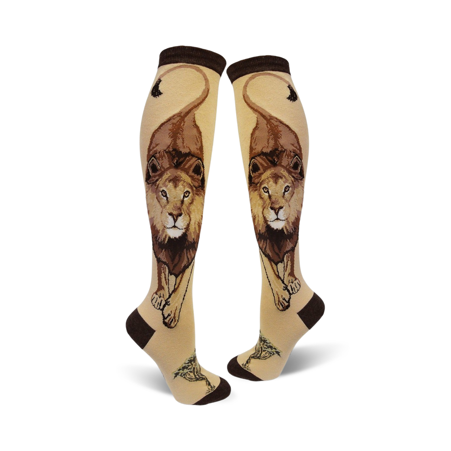Unleash your inner royalty with these Boss Lion socks! These majestic knee-highs for women showcase a fierce lion's face with a lush mane, ready to bring a wild touch to your style. Whether you're taming the concrete jungle or lounging in your pride, these socks will make you feel like the queen of the fashion savanna.