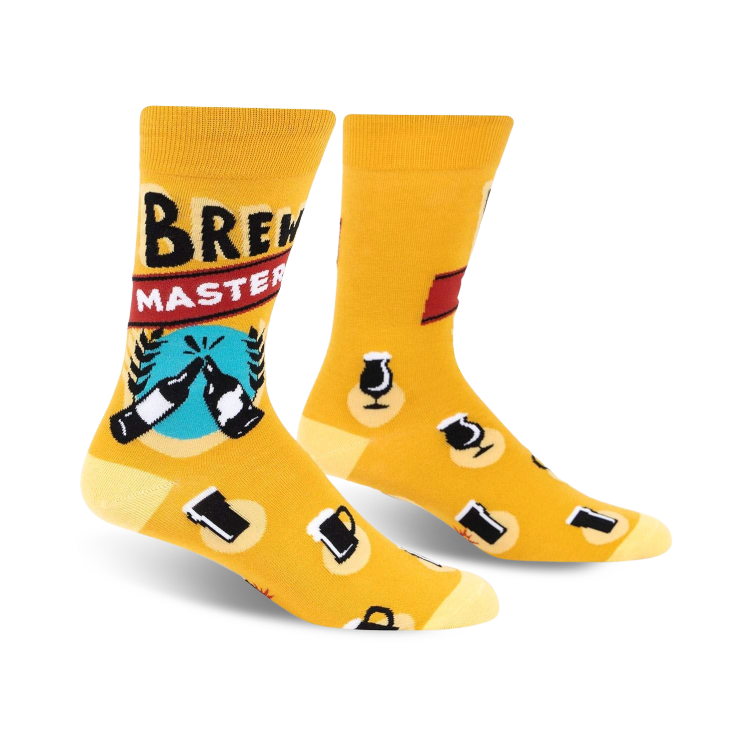 These beer-themed socks are a delightful choice for the brew enthusiast in your life. Whether you're a home brewer or just love a good cold one, these socks are sure to bring a smile to your face. With images of beer glasses, bottles, and hops, these socks are the perfect finishing touch to any casual outfit. They also have a comfy fit that makes them a pleasure to wear. So put on a pair of "Brewmaster" socks next time you're cracking open a cold one, and let the good times flow!