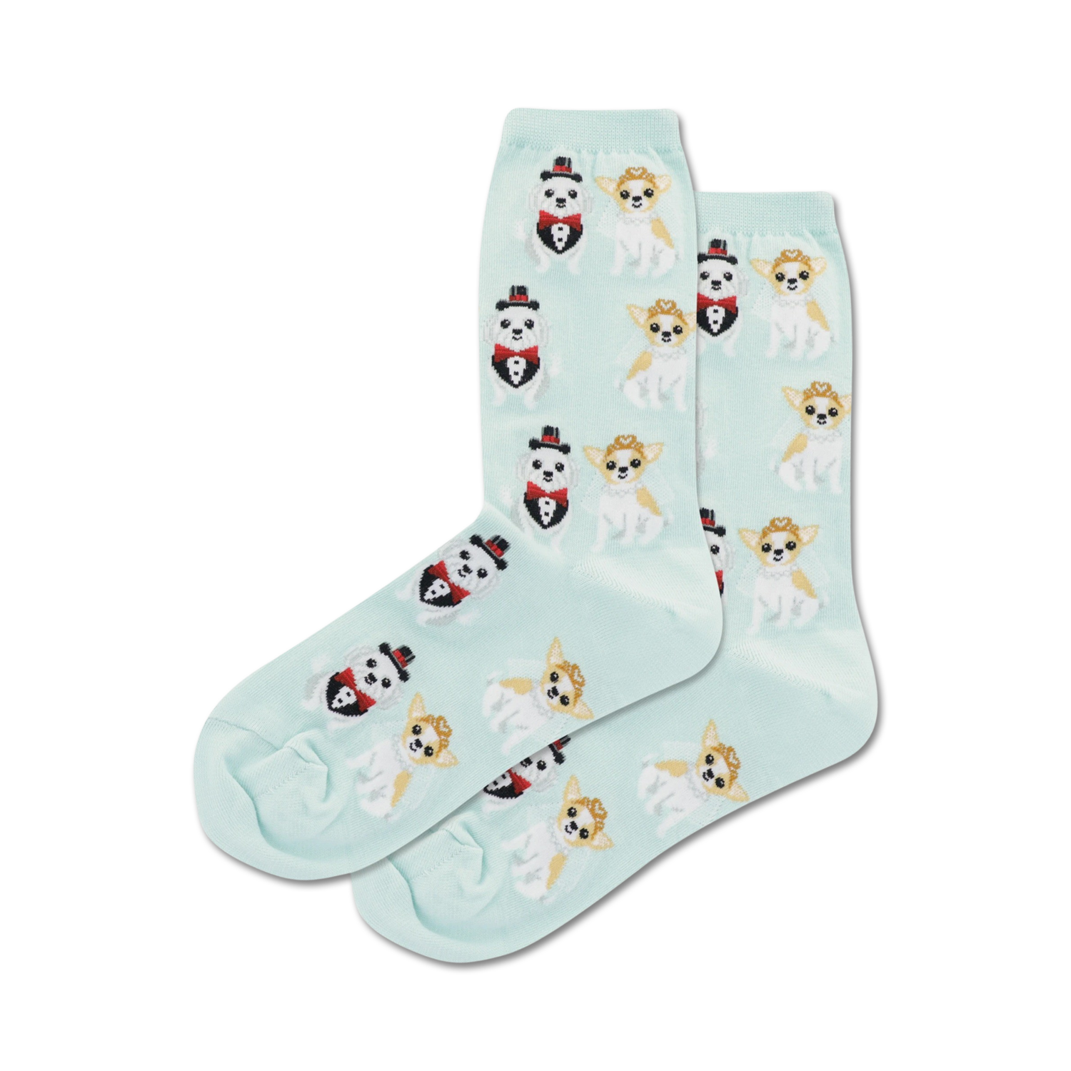 Bridal Dogs Crew Socks: These socks are the perfect way to add a dash of whimsy and joy to any ensemble. With a fun and lighthearted pattern of cartoon dogs dressed to the nines in wedding attire, these socks are sure to turn heads and spark conversations. Put on a pair and show off your playful side while paying a lighthearted homage to those canine companions who've stood by your side through thick and thin.
