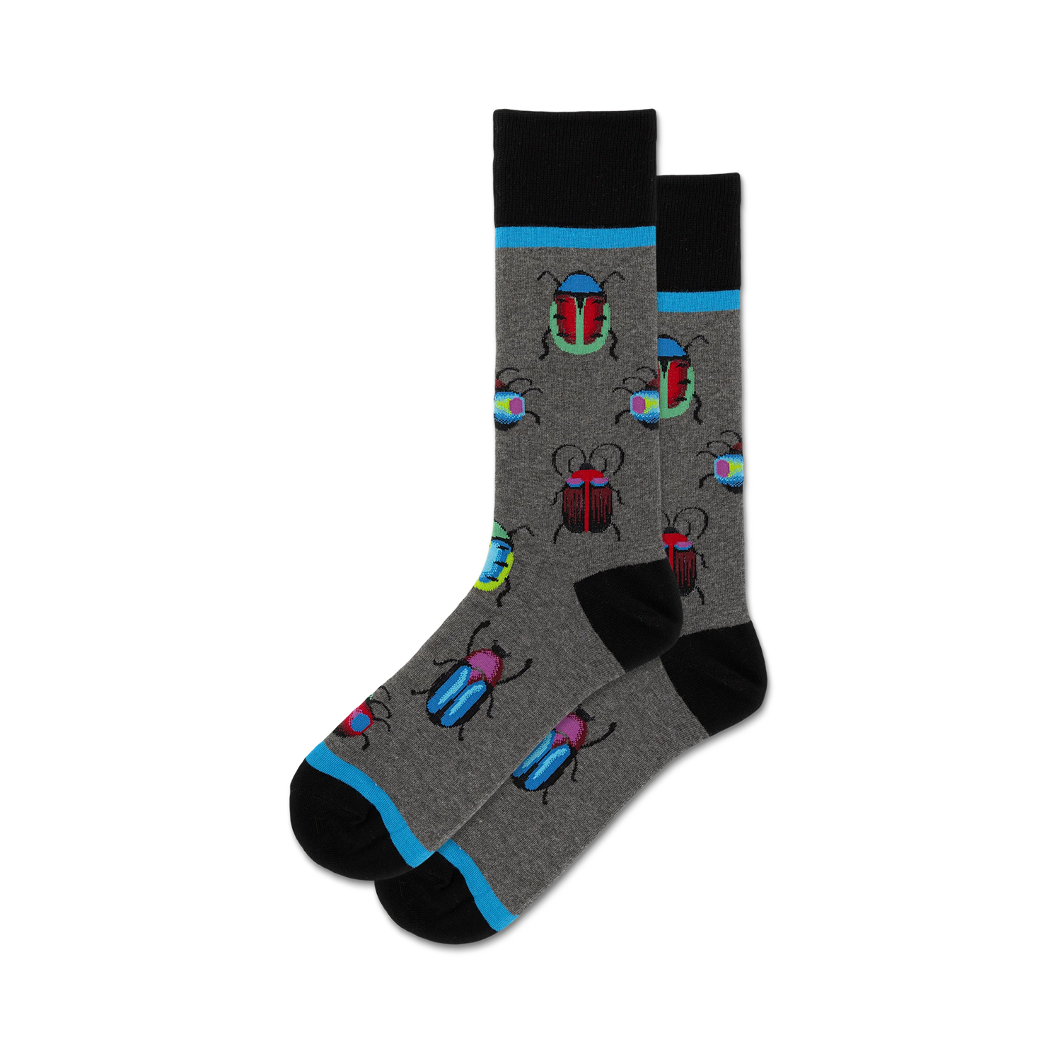 Buggin' Out: Bugs Beetles Crew Socks for Men Our Bugs Beetles Crew Socks are swarming with style and buzzing with fun! These crew-length socks feature a vibrant green background covered in a kaleidoscope of multi-colored beetles. Whether you're a bug enthusiast, nature lover, or just someone who appreciates a good pun, these socks are sure to make you smile. Plus, they're made with high-quality cotton that's soft and comfortable to wear all day long. So slip on a pair of Bugs Beetles Crew Socks and let your feet take a walk on the wild side! Fact: Beetles are the most diverse group of insects on Earth, with over 350,000 known species. That's more than all other types of insects combined! Fact: Some beetles can fly, while others are flightless. The flightless beetles have evolved to use their legs for walking, running, and even jumping. Fact: Beetles come in all shapes and sizes. The smallest beetle is about the size of a pinhead, while the largest beetle can grow to be over 6 inches long, they're also super hardy and can survive in polluted water.