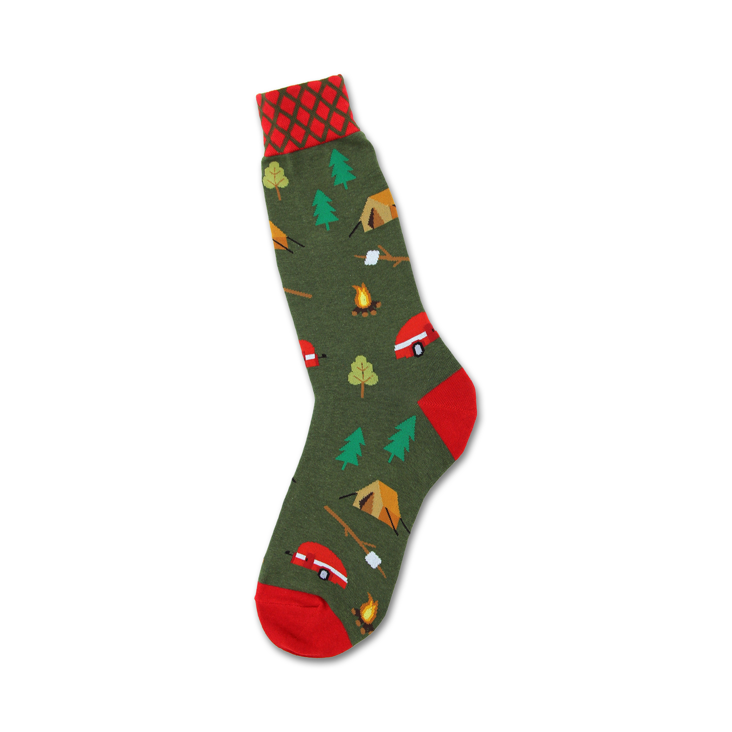 These Camping socks are for the manly man who enjoys a night under the stars, the smell of a campfire, and the taste of a perfectly roasted marshmallow. With a classic crew length and a durable construction, these socks are the perfect addition to any camping outfit. You'll be the envy of the campground when you rock these awesome socks, man!