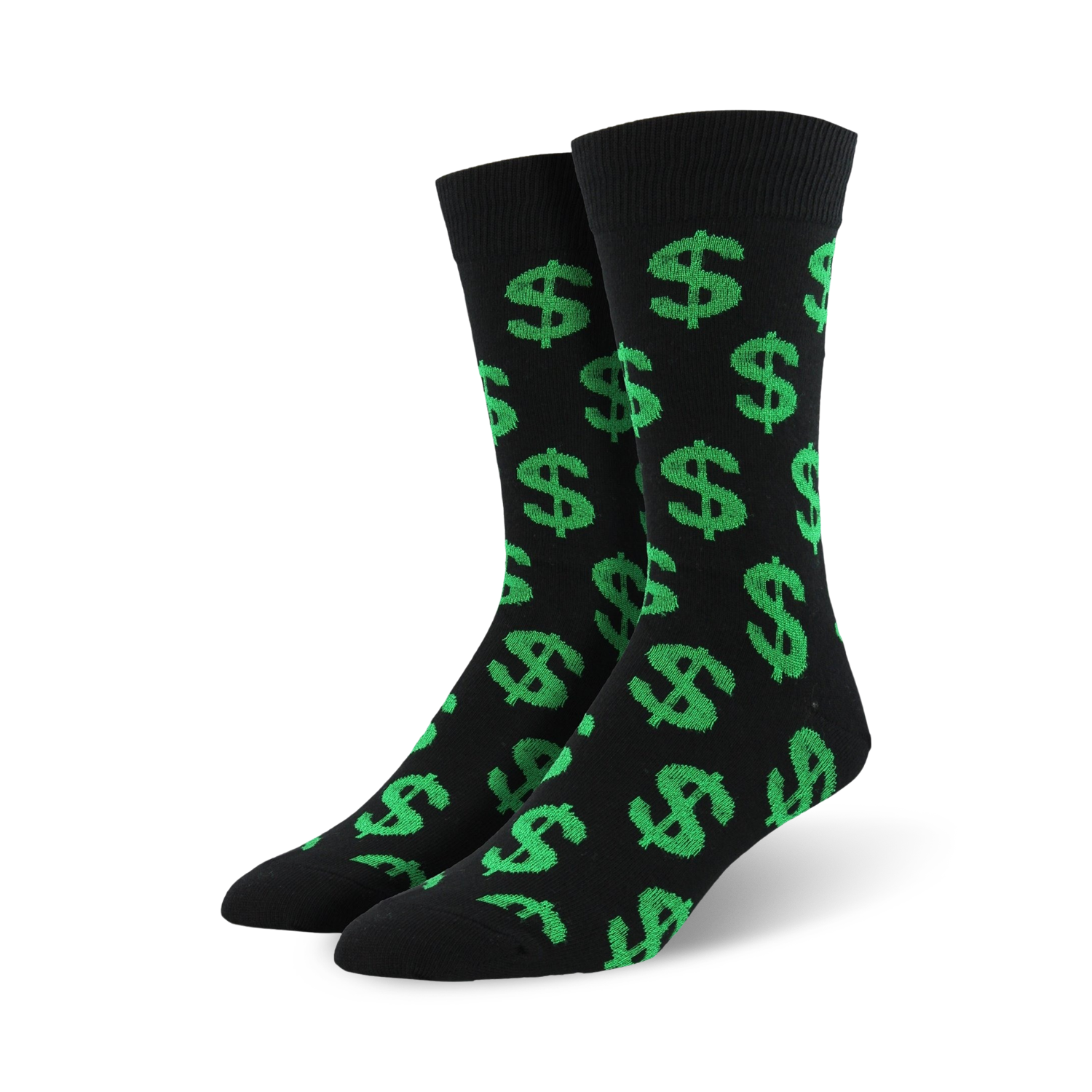 Cha-Ching! Put on your money socks and step into the spotlight! These black socks covered in vibrant green dollar signs are not just fashionable ”they're a statement piece. Let the world know you're a financial rockstar strutting in these eye-catching kicks. Show off your unique style and watch the compliments roll in. Remember, money talks, and with these socks, it's shouting your fabulousness loud and clear. Ready to make a fashion statement that's worth a million bucks?