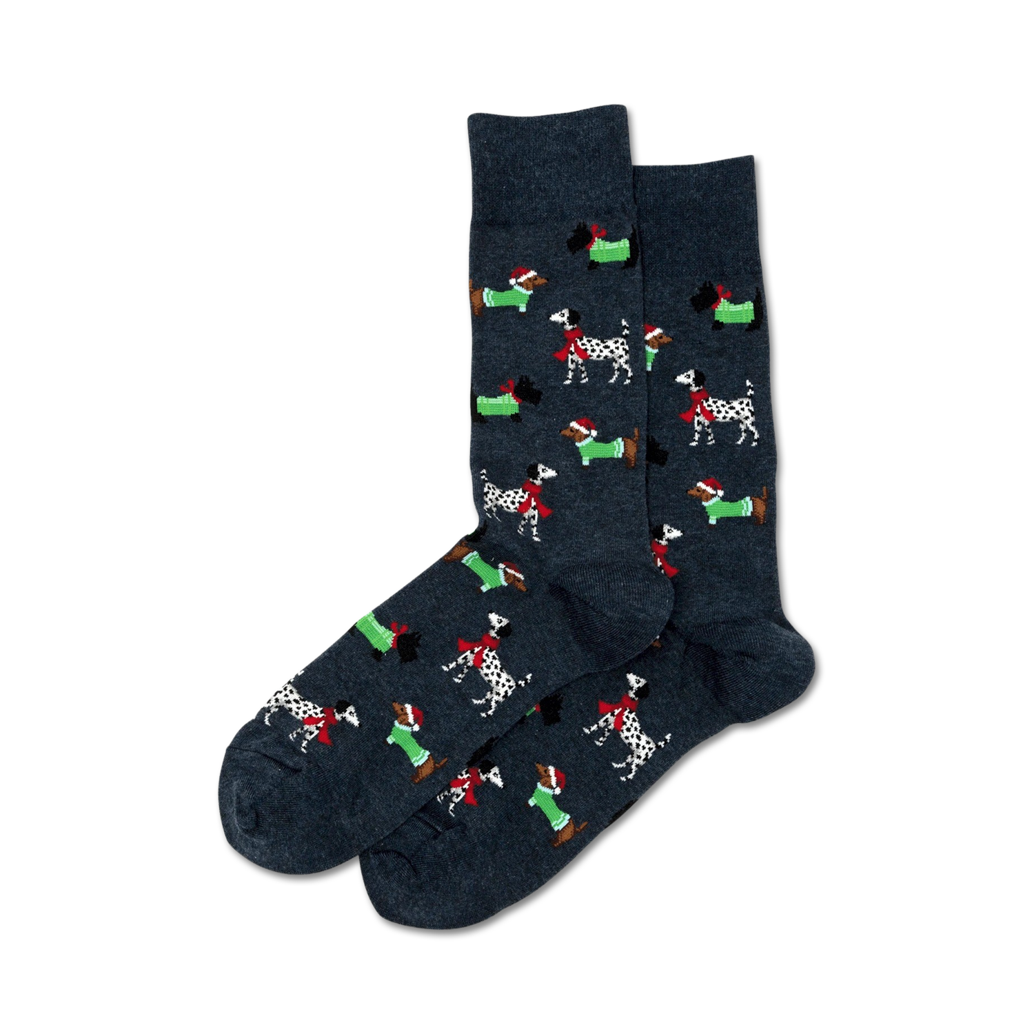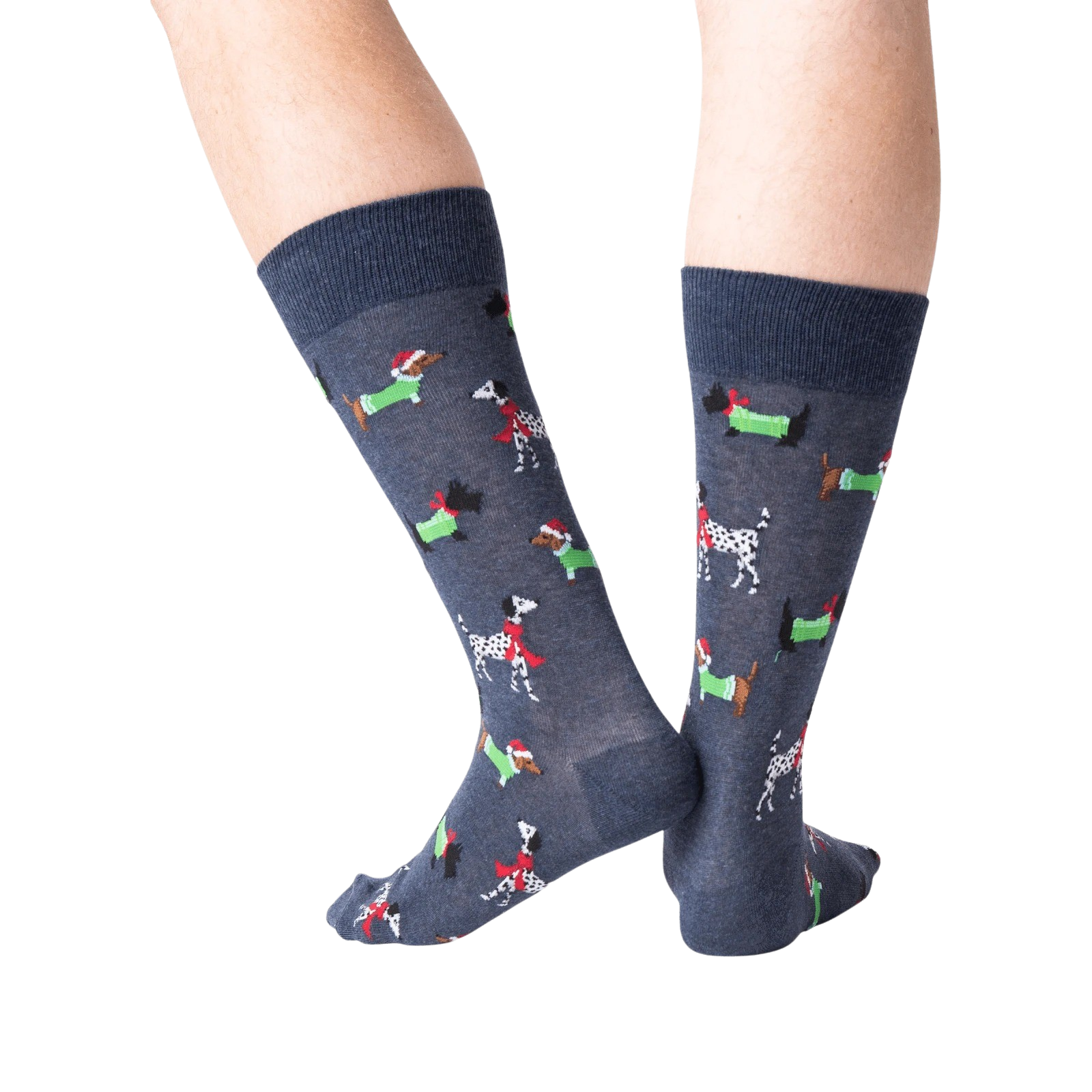 Calling all dog lovers and holiday enthusiasts! Strap on a pair of our "Christmas Dogs" crew socks and let these pups jingle all the way to your feet. With a vibrant blue background and a pack of cartoon canines rocking Santa and elf hats, these socks are a hoot! Whether you're hitting the ugly Christmas sweater party or cozying up by the fire, these socks will keep your toes merry and bright.