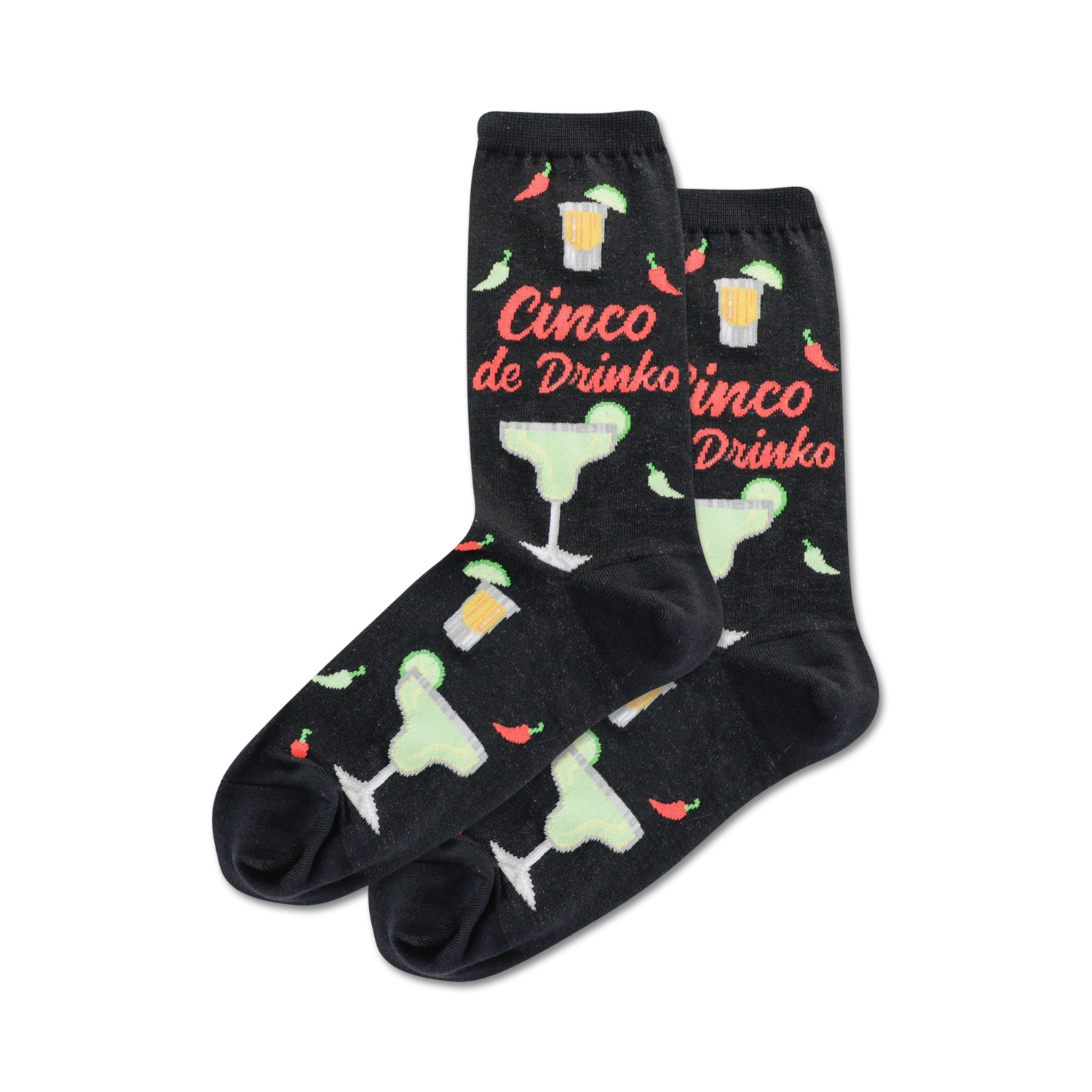 When life gives you lemons...throw a margarita party and wear these Cinco de Drinko socks! Whether you're out on the town or just hanging out at home, these socks are sure to get a few laughs. So grab a margarita and some chips and salsa, and put your feet up in these festive socks.