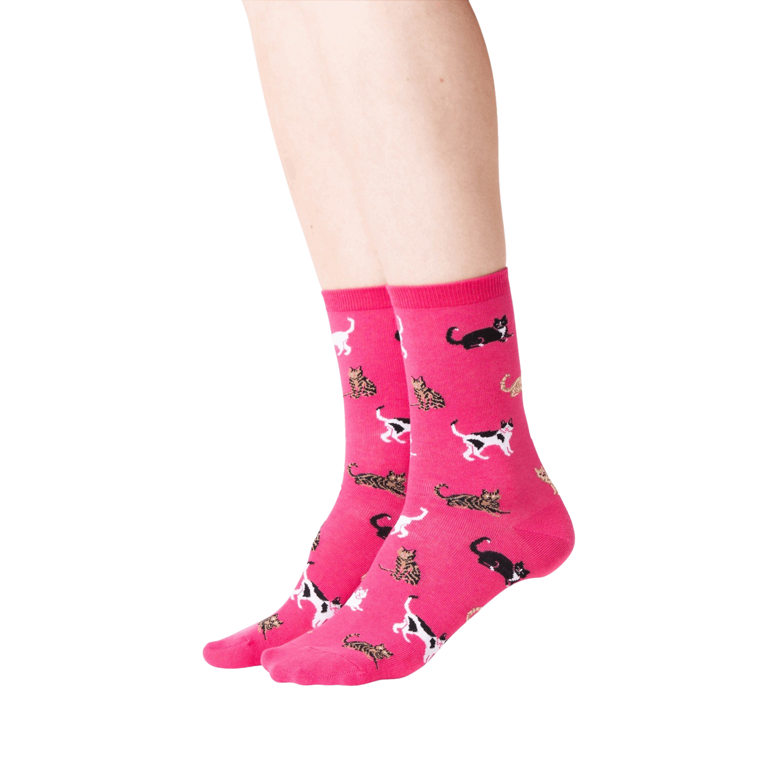 Calling all cat ladies! These Classic Cats socks will have you feline fine with their playful pattern of cats in various poses. Spice up any outfit or add some fun to your feet when you wear these crew-length socks. Made for women in a soft pink, the Classic Cats socks are sure to be your new favorite pair!