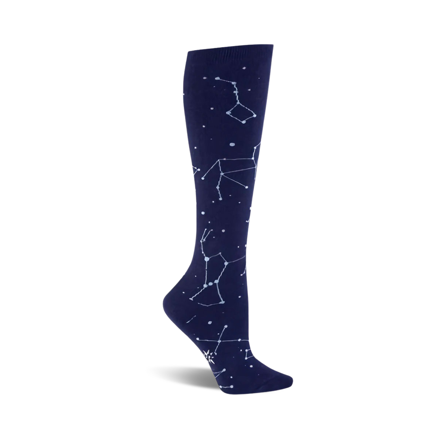 Take a map of the most famous constellations with you wherever you go! These super fun socks are not only eye-pleasing but out of this world. Each cool pair of dark blue knee high socks features a stunning display of different star constellations connected in the sky. Be sure to look out for shooting stars!