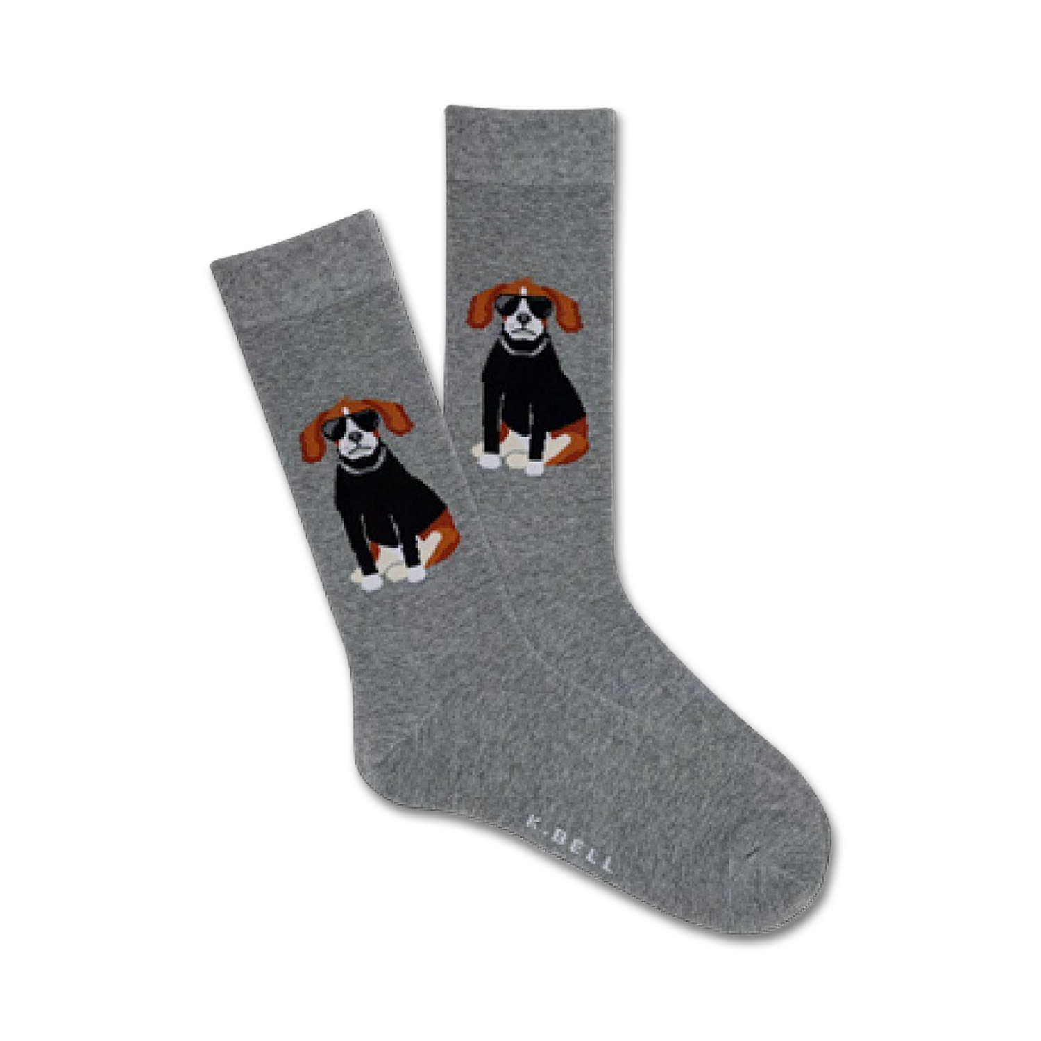 Woof! Check out our Cool Dawg socks and strut your stuff like a boss! Featuring a pattern of cartoon canines rocking black shades, these gray crew socks are paw-some for any dog lover. They're the perfect way to add a touch of fun and personality to your everyday wear. So next time you're feeling ruff, slip on a pair of these paw-sitively paw-some socks, and let your inner dog shine through. You'll be the coolest pup on the block ”guaranteed!