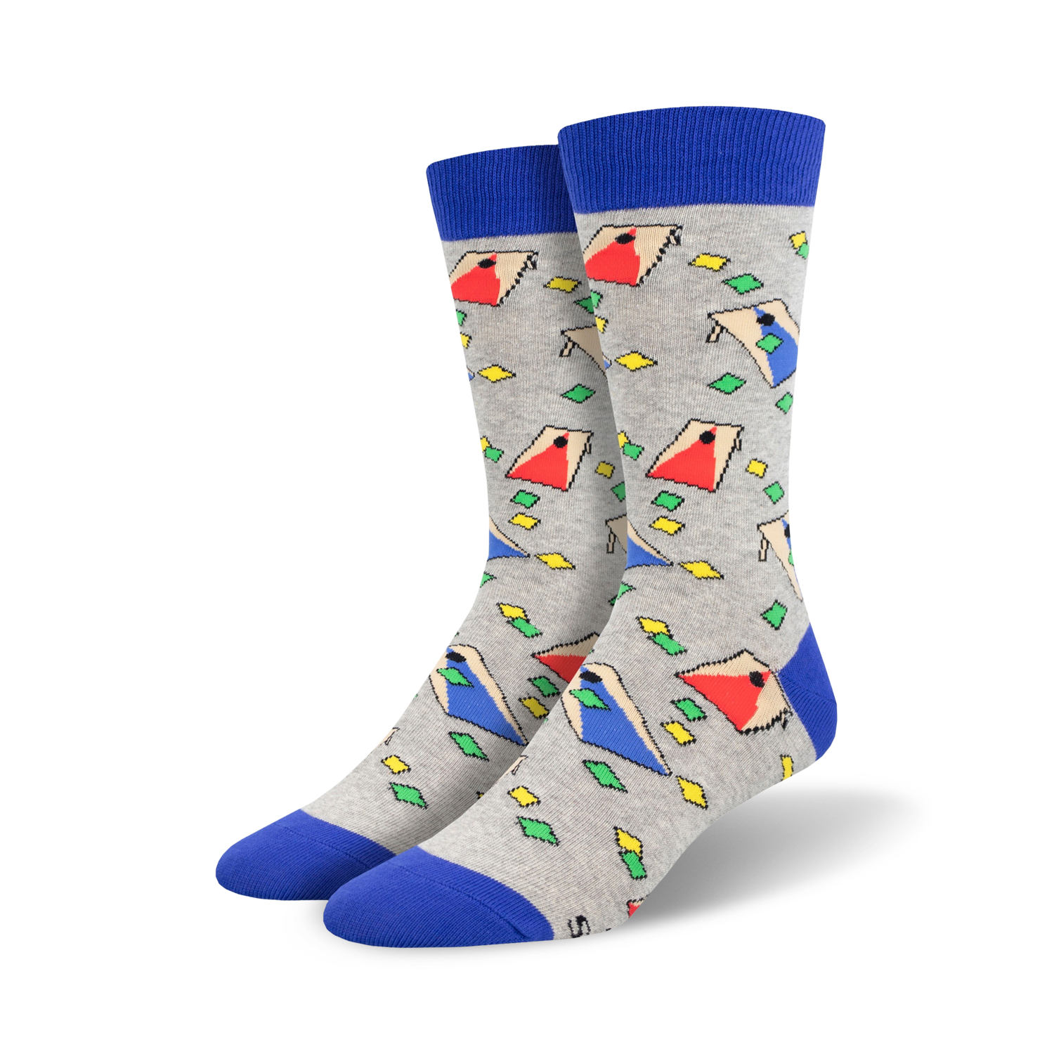 Cornhole game fans, prepare to elevate your style and add a touch of fun to your sock drawer! Our Cornhole Crew Socks are designed with a vibrant print of red and blue boards and yellow, green, and orange bean bags. These socks are sure to turn heads on and off the court. Join the cornhole craze and show your love for the game with these unique and playful socks. Just beware, these socks might make you the target of friendly competition wherever you go!
