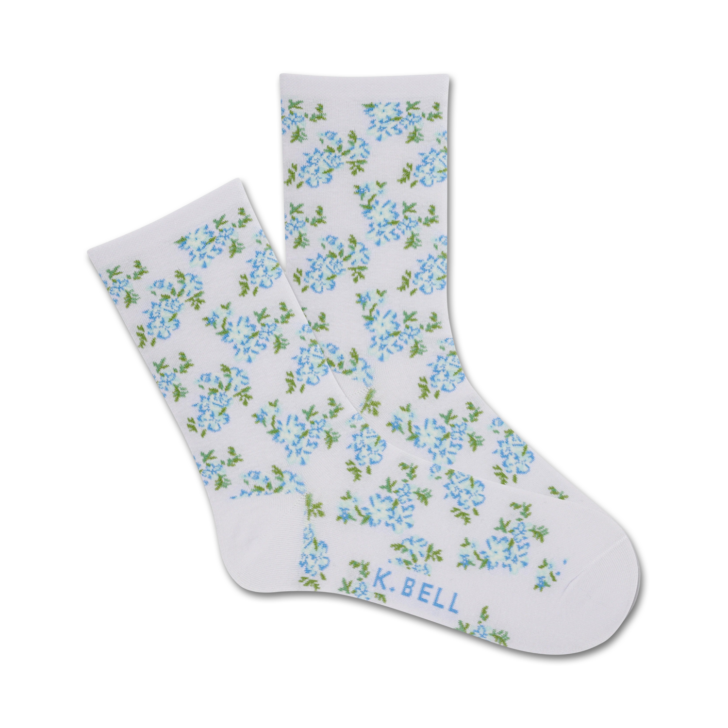 Say hello to the Cottage Floral sock! These charming socks are covered in tiny blue forget-me-nots and lush green leaves to remind you of summertime strolls in the English countryside! Glance down from your towering skyscrapers as you wear a bit of nature on your feet and stride through the urban jungle. The pint-sized flowers will add just the right touch of panache to your casual outfits. They're so cute your heart might even skip a beat, so be sure to wear sturdy shoes!