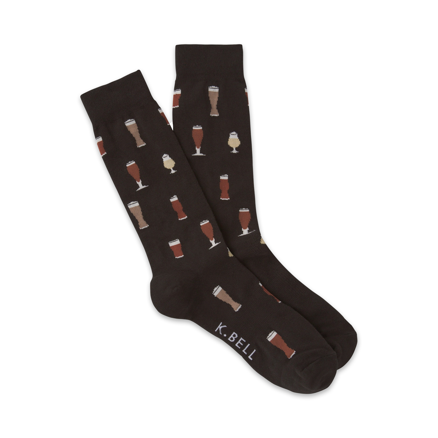 Get a little crafty with your weekday wear. After all, life would be unBEERable without a great pair of socks! These cool all black crew socks feature a refreshing pattern of different types of craft beer in glasses. They'll have you looking forward to a well deserved weekend with your favorite brews.