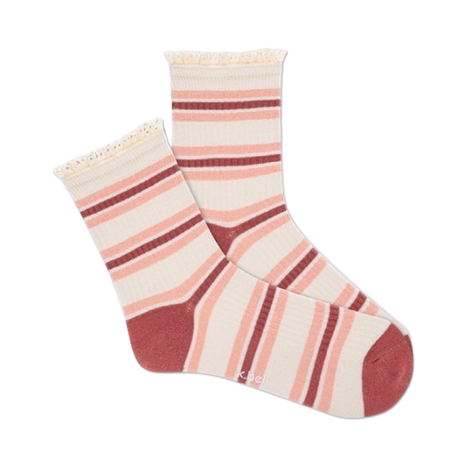 Show off your fashion-forward side with these Crochet Lace Ribbed Quarter Socks! With their white base, thin red stripes, and red cuff, these socks are anything but boring. The ribbed knit fabric adds a touch of texture, while the lace pattern at the top brings a hint of femininity. Whether you're dressing up or dressing down, these socks are sure to turn heads. Fun fact: Did you know that the lace pattern on these socks is inspired by the intricate designs found on crochet lace? Now you can have the beauty of lace without having to do any of the work!