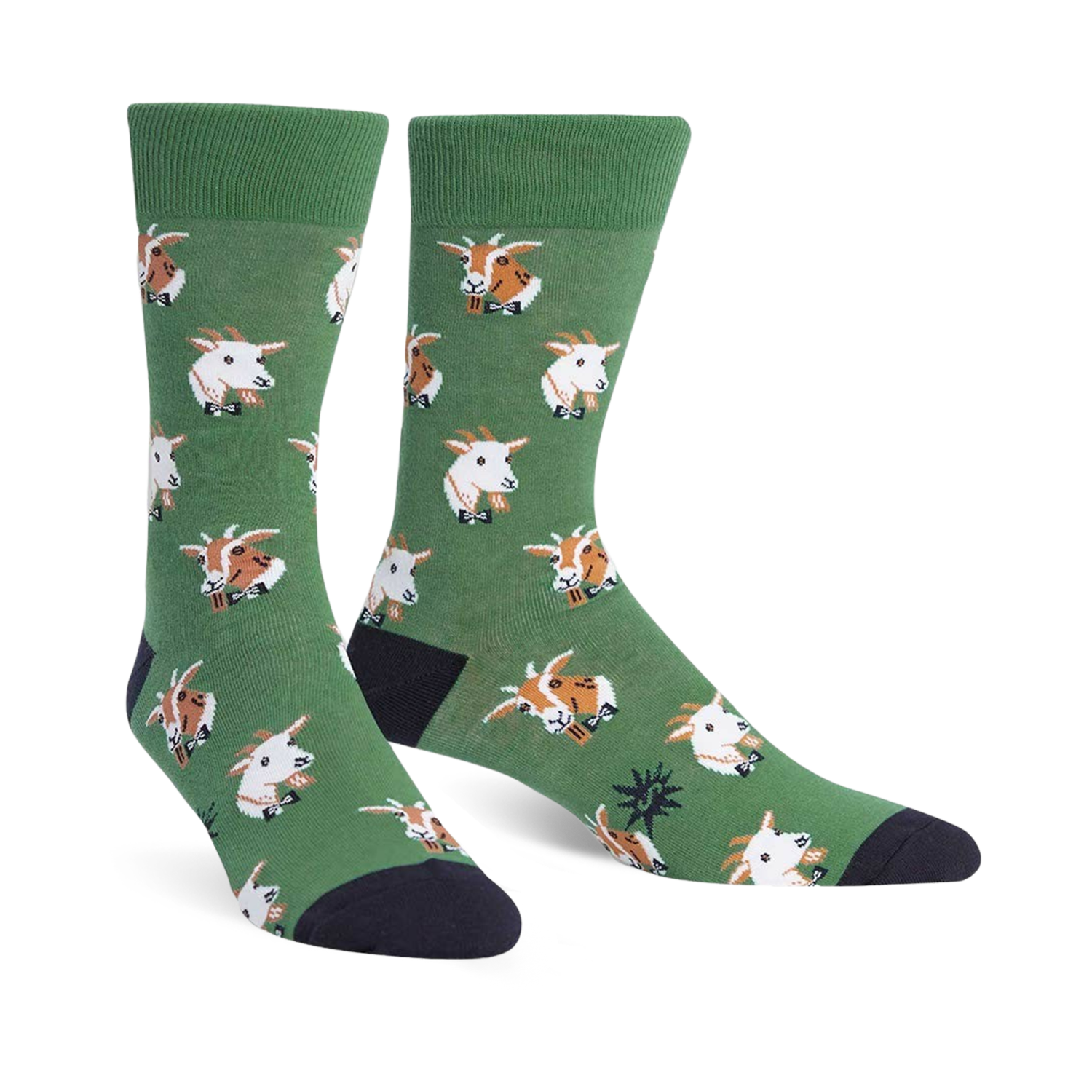 Picture this: a herd of dapper goats, dressed in monocles and sporting handlebar mustaches, parading around your feet. These dark green novelty socks are sure to make a baaaaa-d impression wherever you go. Perfect for the goat-loving man in your life, these crew socks are as comfortable as they are stylish. Your sole-mates will thank you.