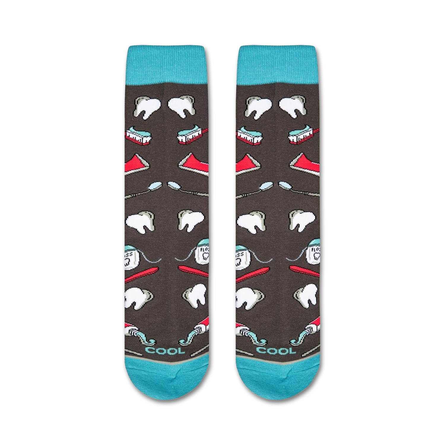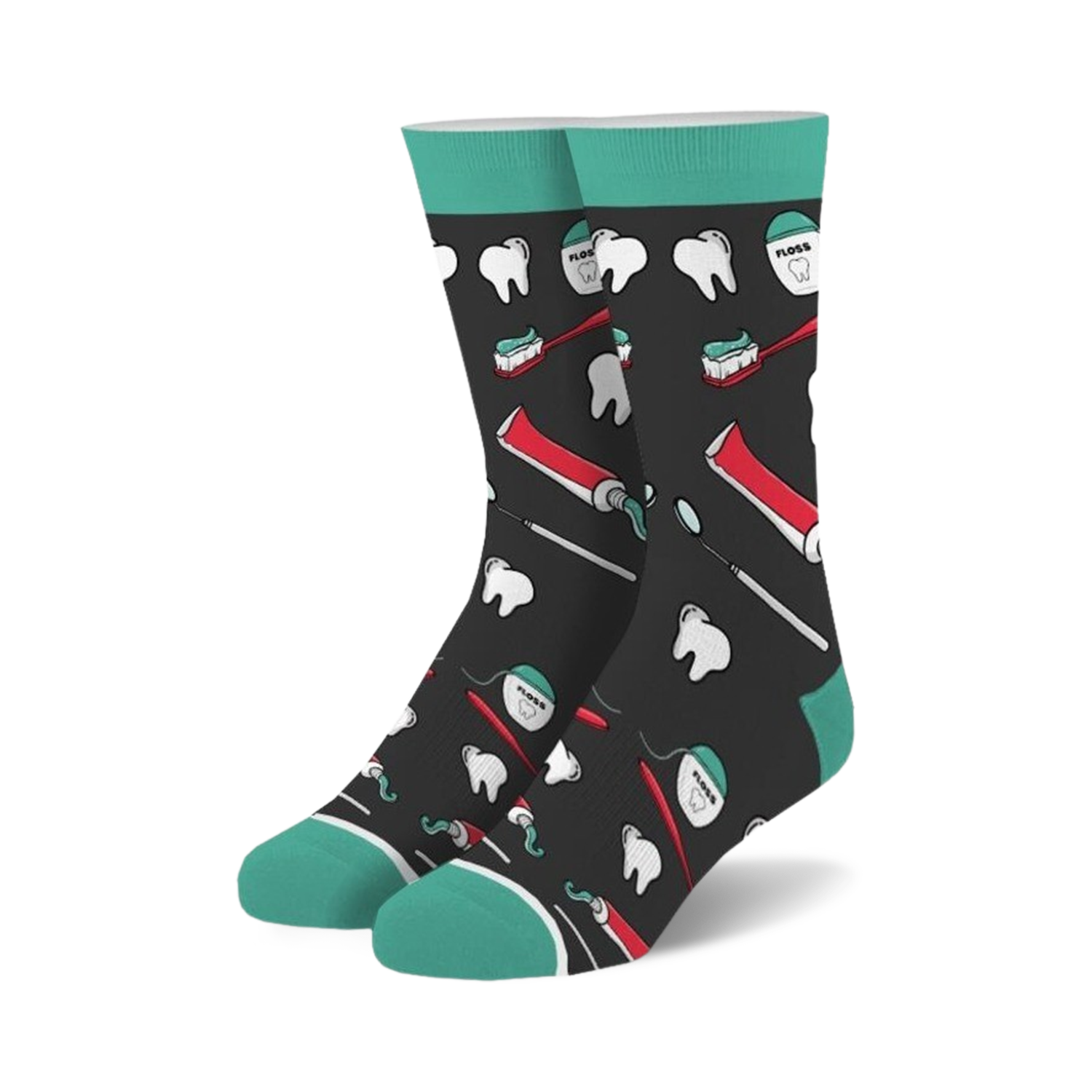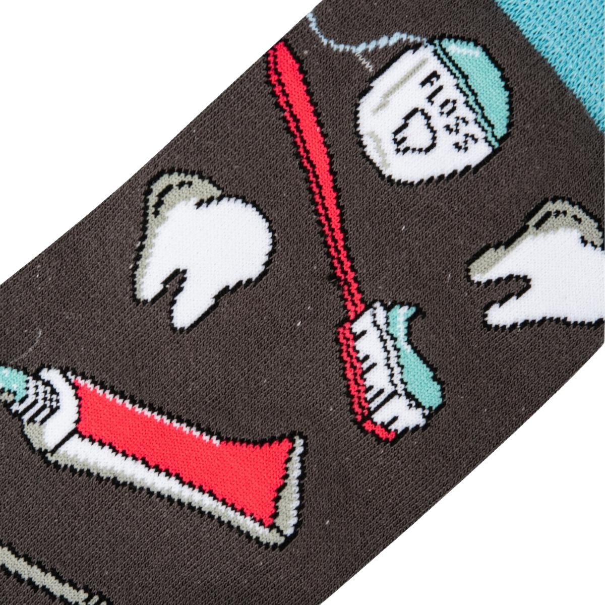 Oh snap! These Dentist socks are making us smile! Featuring a playful pattern of cartoon teeth, floss picks, toothpaste, and toothbrushes, they're a fun way to add a little humor to your sock drawer. Made with a durable construction, these crew socks are sure to last you through countless trips to the dentist. Show off your pearly whites and your sense of style with these grin-inducing socks!
