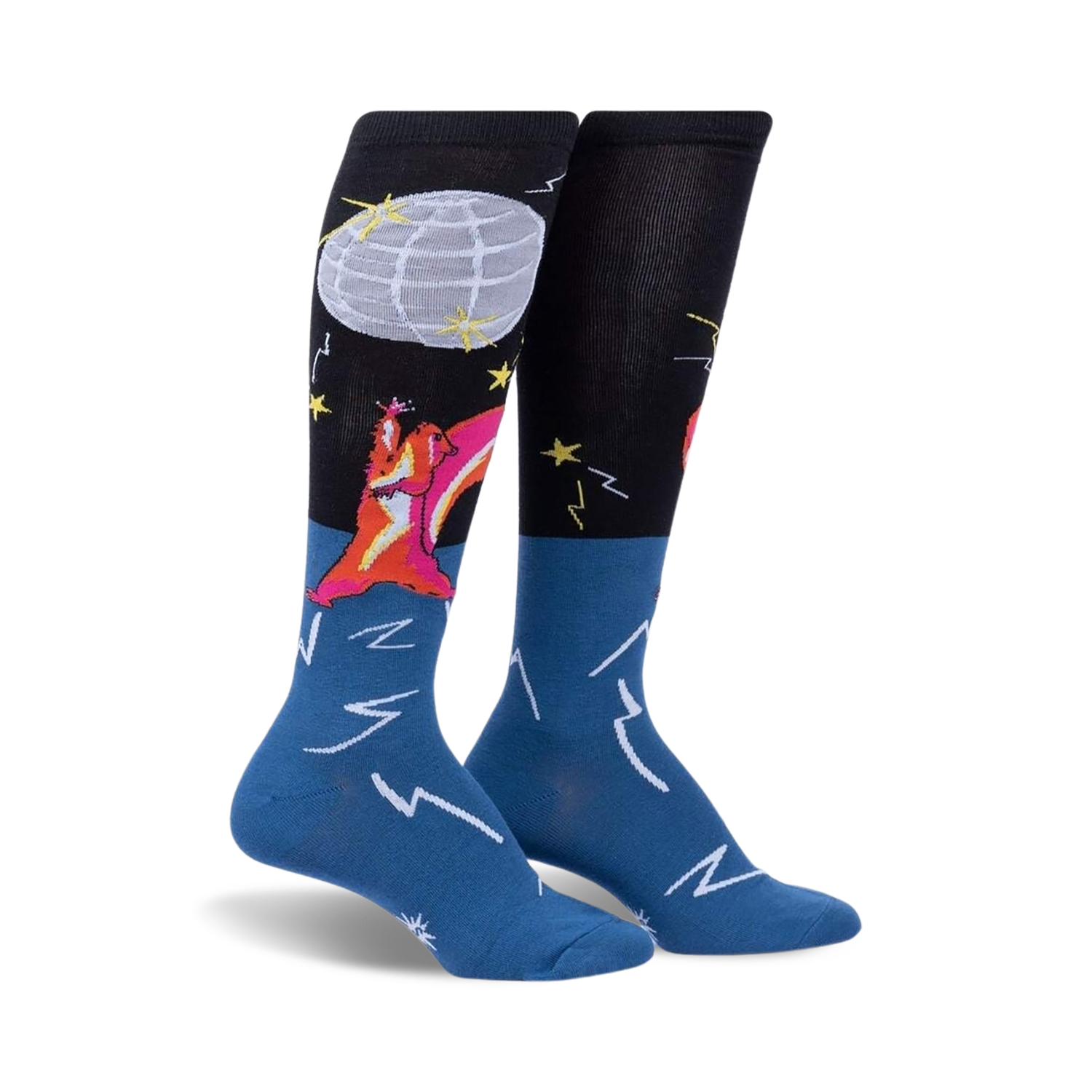 The Disco Nut socks dance their way into your shoe drawer, ready to sprinkle a wild disco fever into your life. Picture this: a party-rocking squirrel sporting a shiny disco ball helmet, grooving away with his fabulous pink partner. These socks will make you want to shake your tail feather all day long.