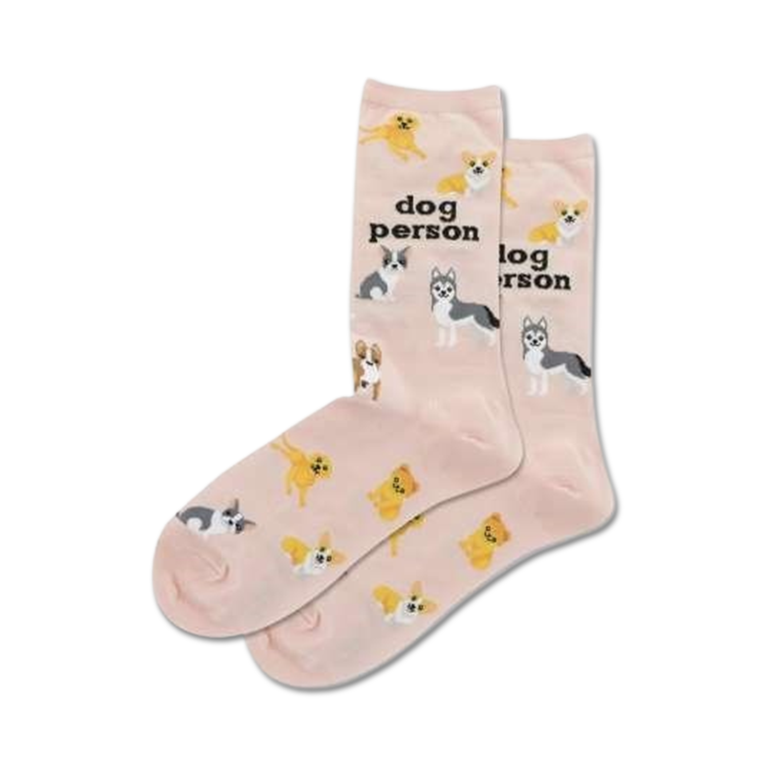 Everyone knows dogs are man's best friends, but these socks are a dog's best pals! Show off your love for your furry pals in these pink crew socks featuring different breeds of dogs wearing adorable outfits. Dog Person socks are the perfect way to express your canine pride, whether you're hitting the park or just lounging at home.