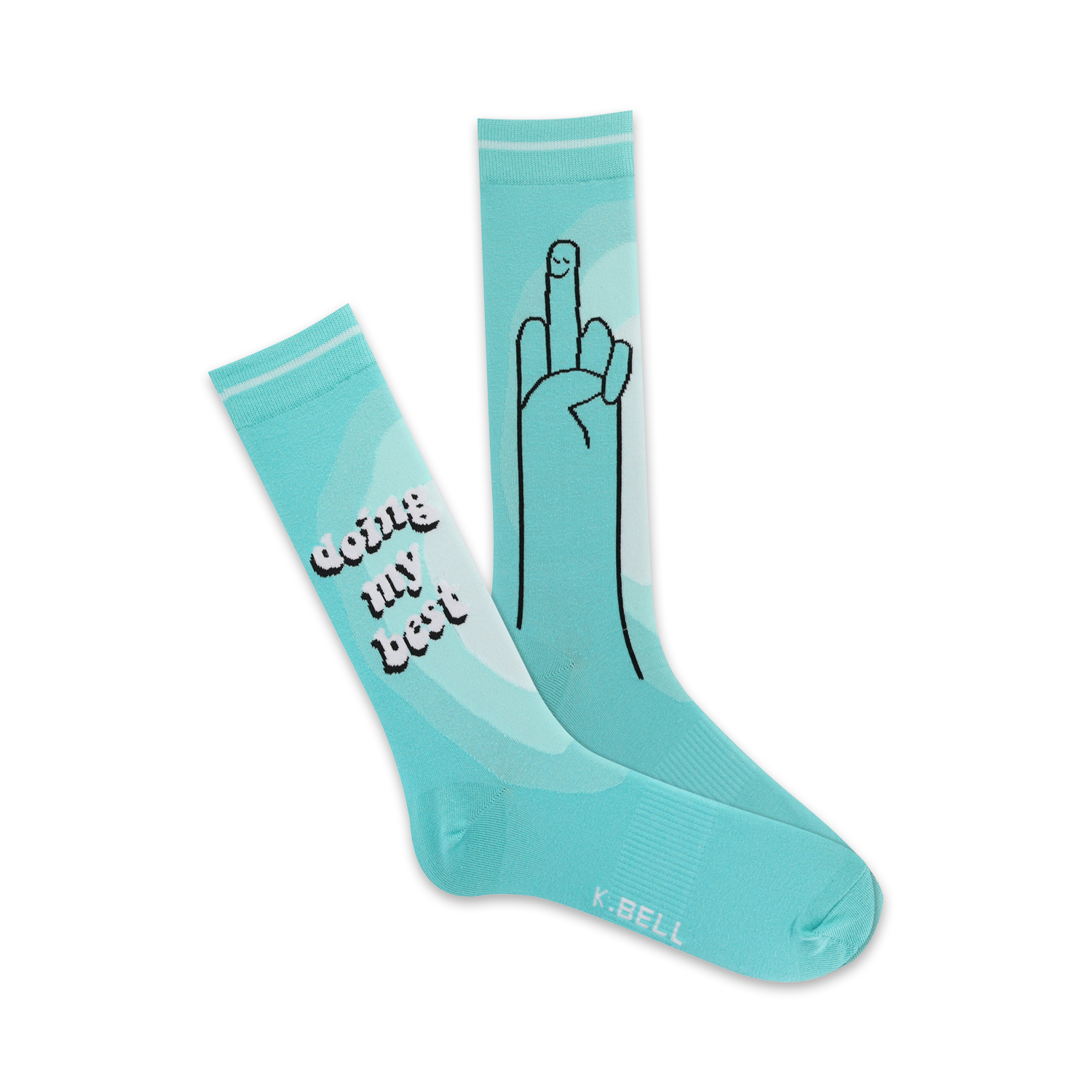 Doing My Best socks: For when you're giving it your all, even when it feels like you're flipping the world the bird. These light blue crew socks feature the words "Doing My Best" and a middle finger graphic, perfect for those days when you just need to let everyone know how you're really feeling. Made for men who aren't afraid to show their sarcastic side, these socks are a fun and inspirational way to add a little personality to your everyday style. They're also a reminder that even when things are tough, you're still doing your best, and that's something to be proud of.