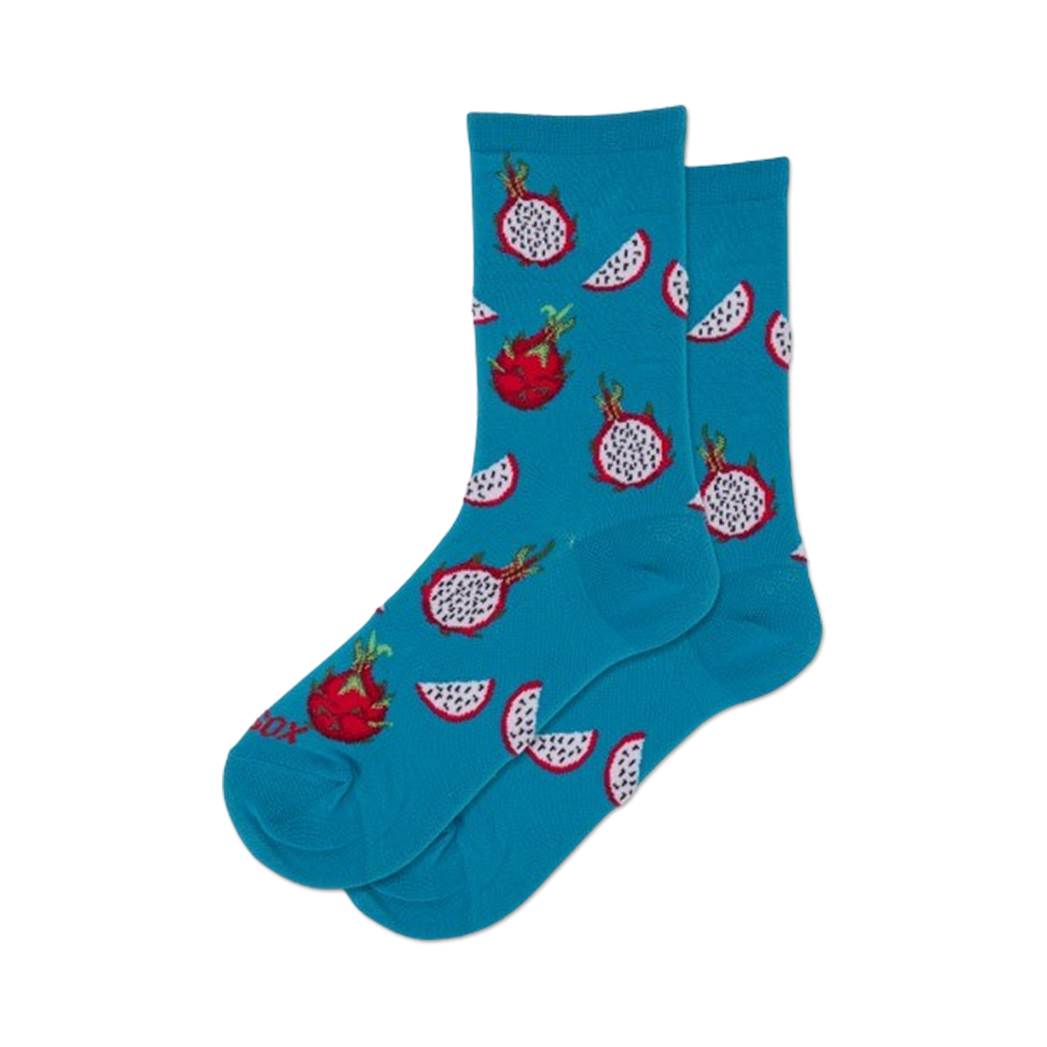 These Dragon Fruit Crew Socks for Women will give you all the feels. With a vibrant pink and green dragon fruit pattern, these plush socks are as juicy as it gets. Unleash your inner foodie and rock these fun socks everywhere you go! They'll have you looking as fly as a fruit bat ;)
