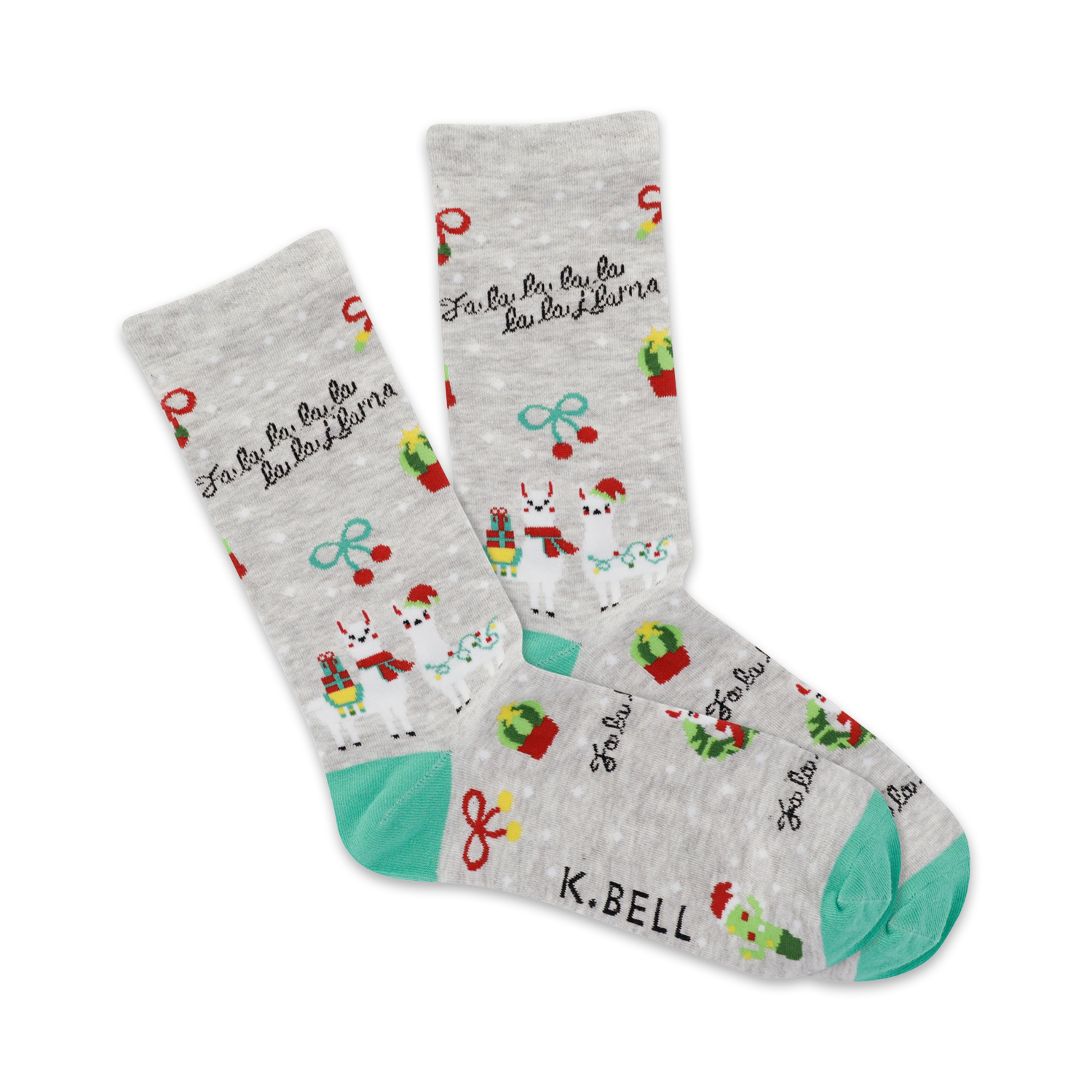 Get ready to fa-la-la-llama! These festive gray socks will have you prancing around the Christmas tree in style. They have llamas in red and white hats, green cacti, red ornaments, and more! The llamas will have you smiling from ear to ear and wishing for more snow. Who needs mistletoe when you can have a llama? Put on your best pair of shoes, a pair of these socks, and prance around town feeling festive.