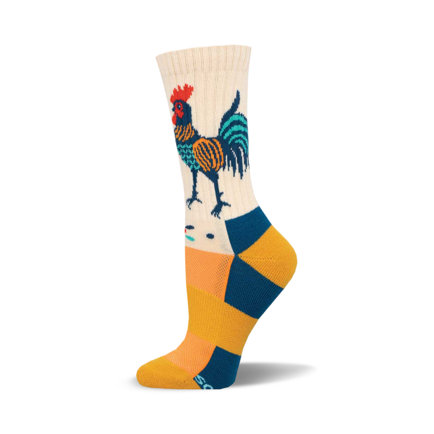 Unleash a barnyard of style with our Folk Art Rooster socks! Adorned with fiesta-ready roosters donning colorful sombreros, these charming socks pack a punch of whimsy and vibrant color. Whether you're strutting the farm or dancing in the city, let your feet crow in style at any fiesta! Need a gift for that chicken-loving amigo or just want to jazz up your wardrobe? These socks are clucking fantastic!