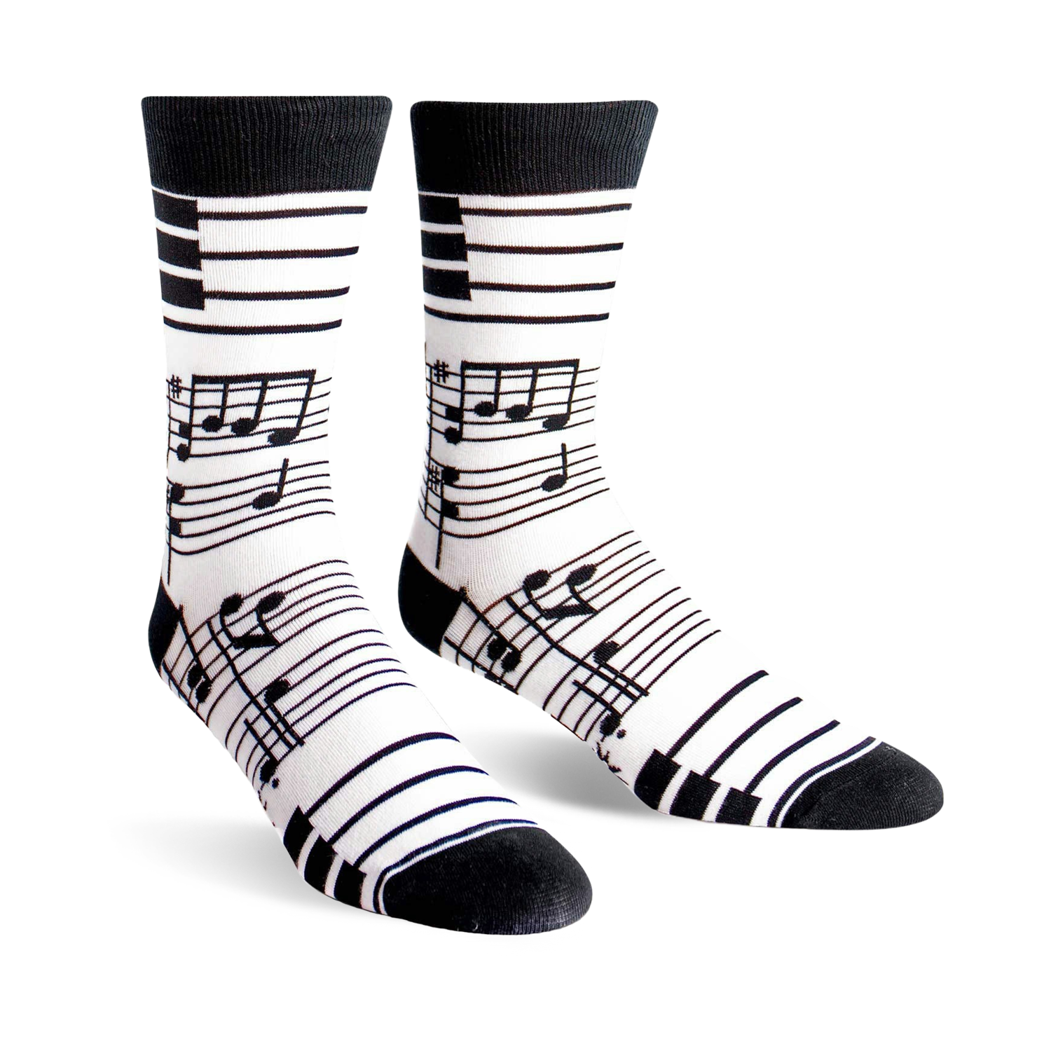 Put on your Footnotes socks and let the music take control. These black crew socks are covered in musical notes, piano keys, and treble clefs. They're perfect for any music lover who wants to add a little fun and personality to their wardrobe. Plus, they're so comfy, you'll feel like you're walking on clouds. Rock these socks to your next concert, jam session, or music lesson and let your feet do the talking.