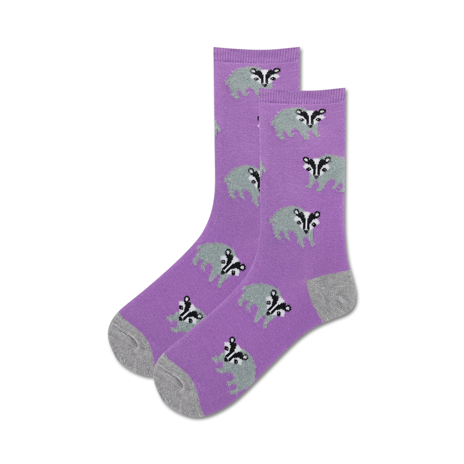 Fuzzy Badger socks are soft, fuzzy and super cute. These crew length socks feature a fun pattern of playful, little badgers in cartoonish style. The crew length is perfect for showing off the badger print while keeping your feet comfortable.