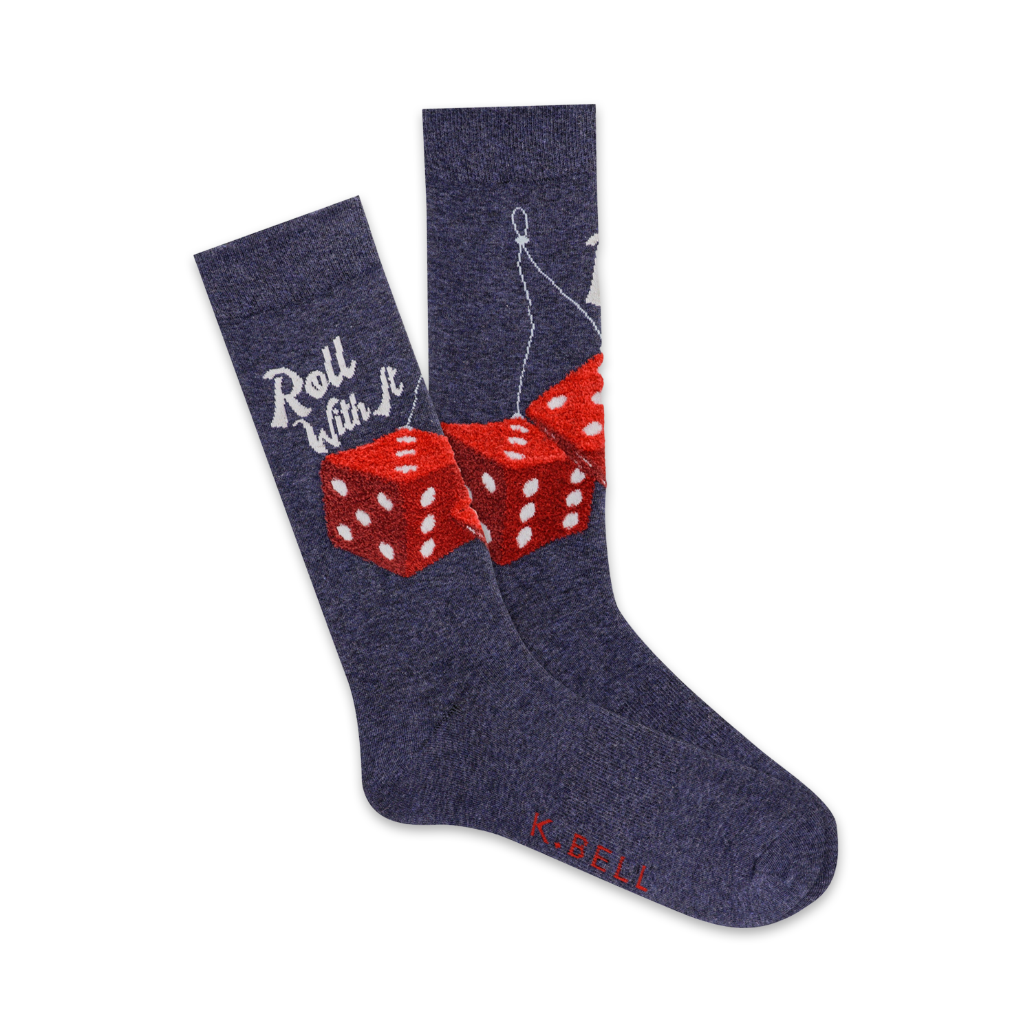 Fuzzy Dice: Roll With It Socks That Are a Gamble-ing Good Time! Take a chance on looking sharp with these Fuzzy Dice socks, the perfect choice for those who love to gamble and look stylish. Featuring a vibrant blue backdrop with red fuzzy dice and a playful "Roll With It" message, these socks will turn heads at any casino, card game, or poker night. Made for men, they're sure to bring you luck and compliments wherever you wear them. Put on a pair and feel the thrill of the game!