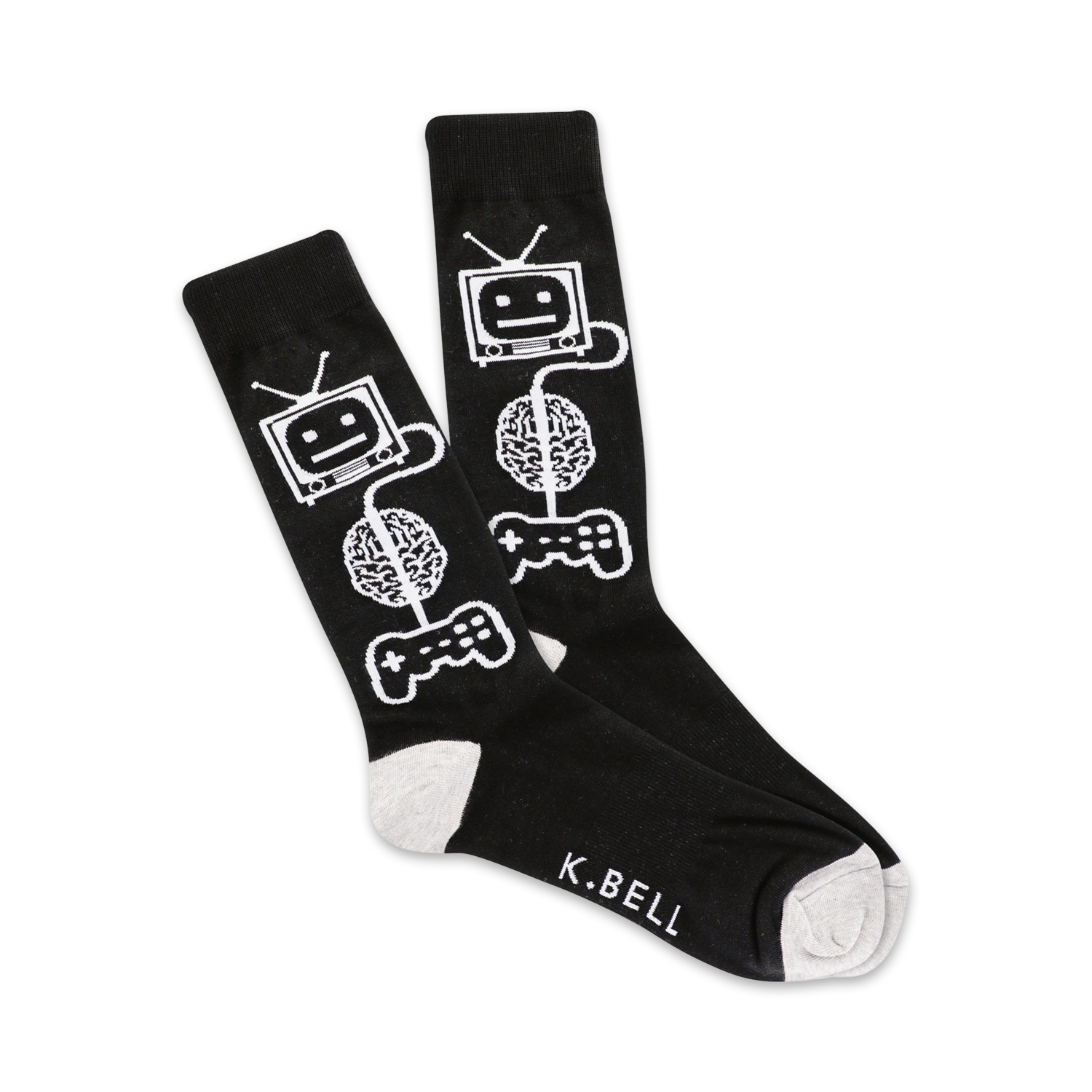 Have you ever wanted a sock that tells the world you're a dedicated gamer? Introducing Game Brain socks, the best way to rep your love of video games and show your commitment to the couch potato lifestyle. With a pattern of white brains topped with tiny televisions and video game controllers, these socks are the perfect way to let everyone know that you're serious about gaming. Like a boss!