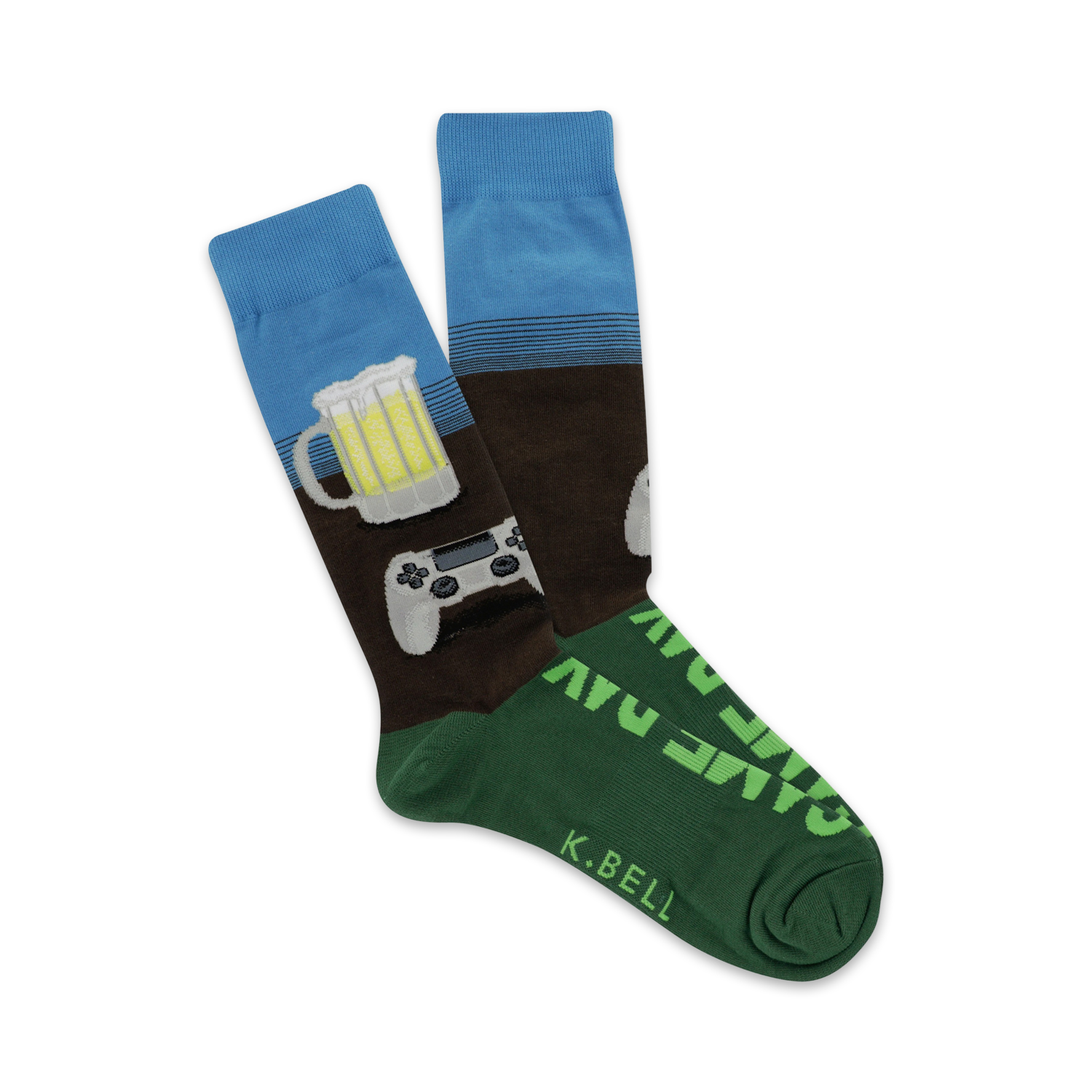 Cheers to game day! Whether you're crushing your rivals on the virtual or actual field, show your team spirit with these thirsty socks! This ultimate combo of beer mugs and video game controllers makes it the perfect present for that beer-loving gamer guy in your life. Ready player one...and two...and three...and the whole gang!
