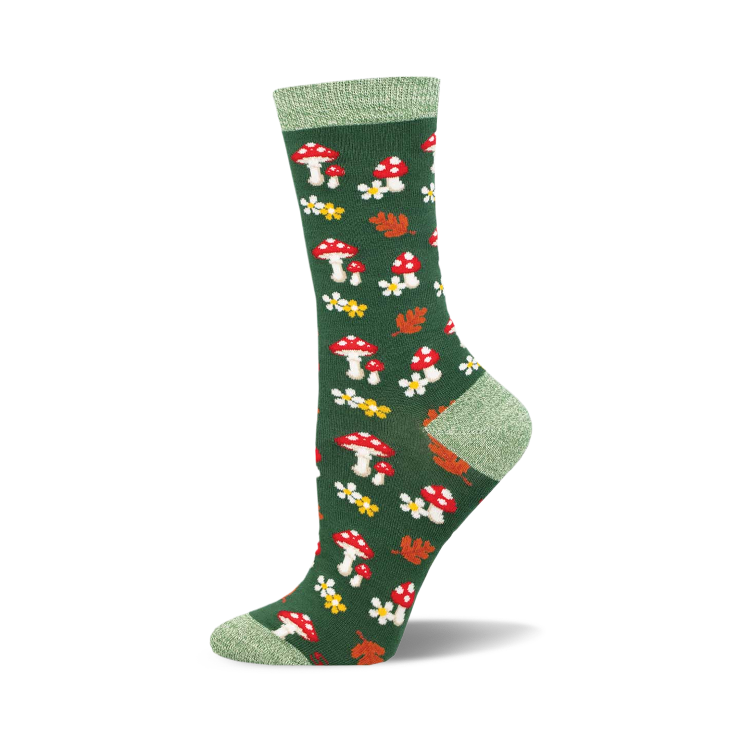 Crafted from bamboo, these socks are as soft on your feet as they are on the environment. Decked out in midnight black with earthy brown accents, they showcase a whimsical pattern of red toadstool mushrooms, turning each step into a miniature woodland adventure. Perfect for those who appreciate a hint of forest magic in their daily wanderings. Whether you're lounging or lunging, these socks are your silent partners in crime, whispering tales of enchantment from beneath the cuff of your jeans. They're not just socks; they're a covert escape to a moss-covered, fairy-tale world.