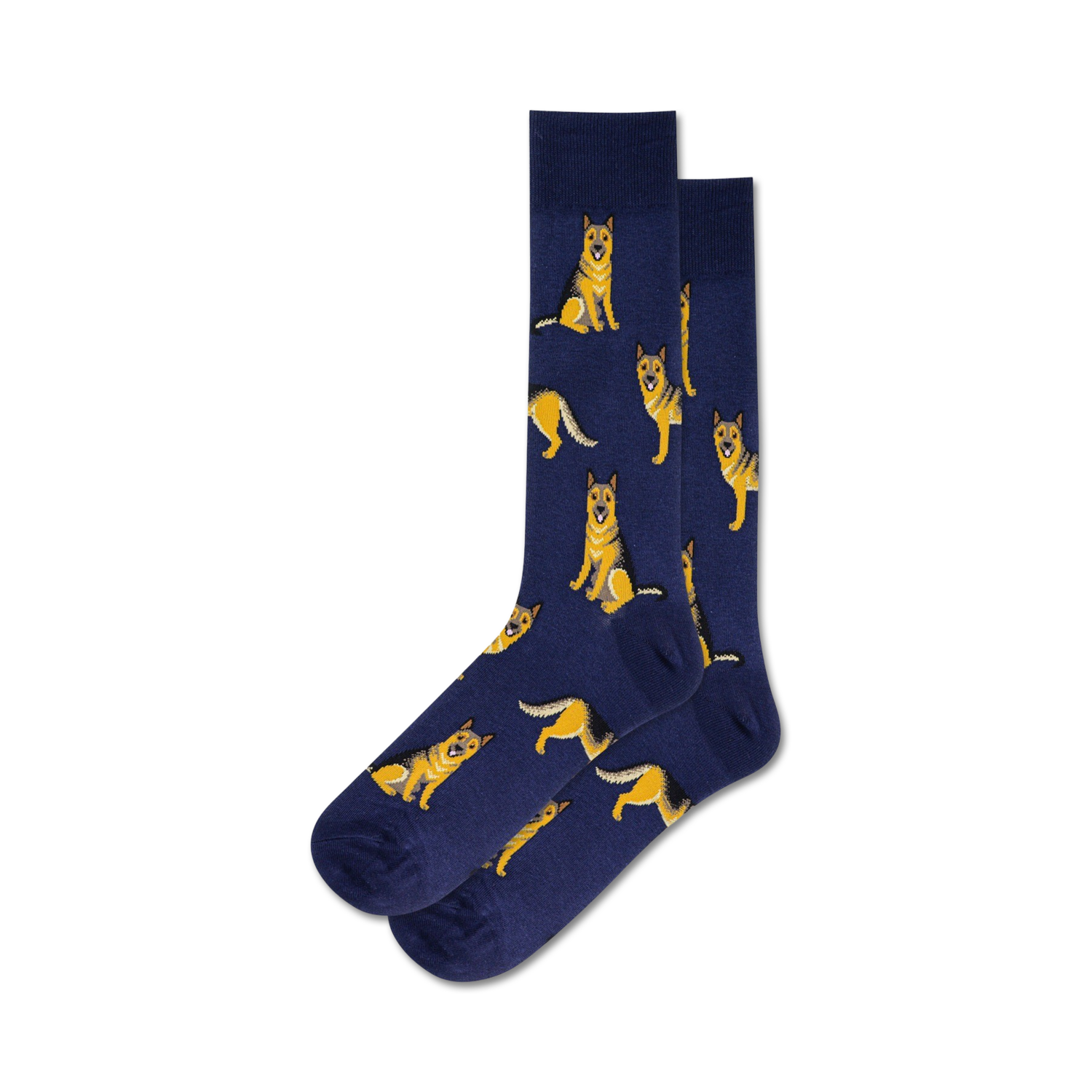 Grab a pair of our German Shepherd socks and let these adorable puppers trot around your feet. With a dark brown and tan design of German Shepherds sitting in various poses, these socks are sure to put a spring in your step. Who knows, maybe some of their spunk will rub off on you!