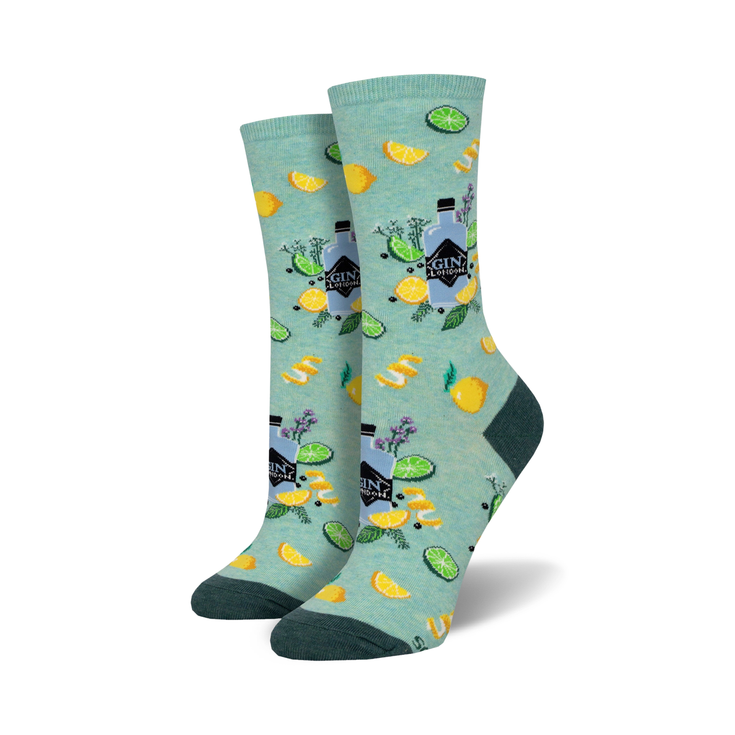 Finish your G&T in style with these Gin It To Win It crew socks! Featuring a pattern of fresh lemons, juicy limes, and bottles of gin, these socks are the perfect way to add a pop of fun to your feet. Sip, sip, hooray!