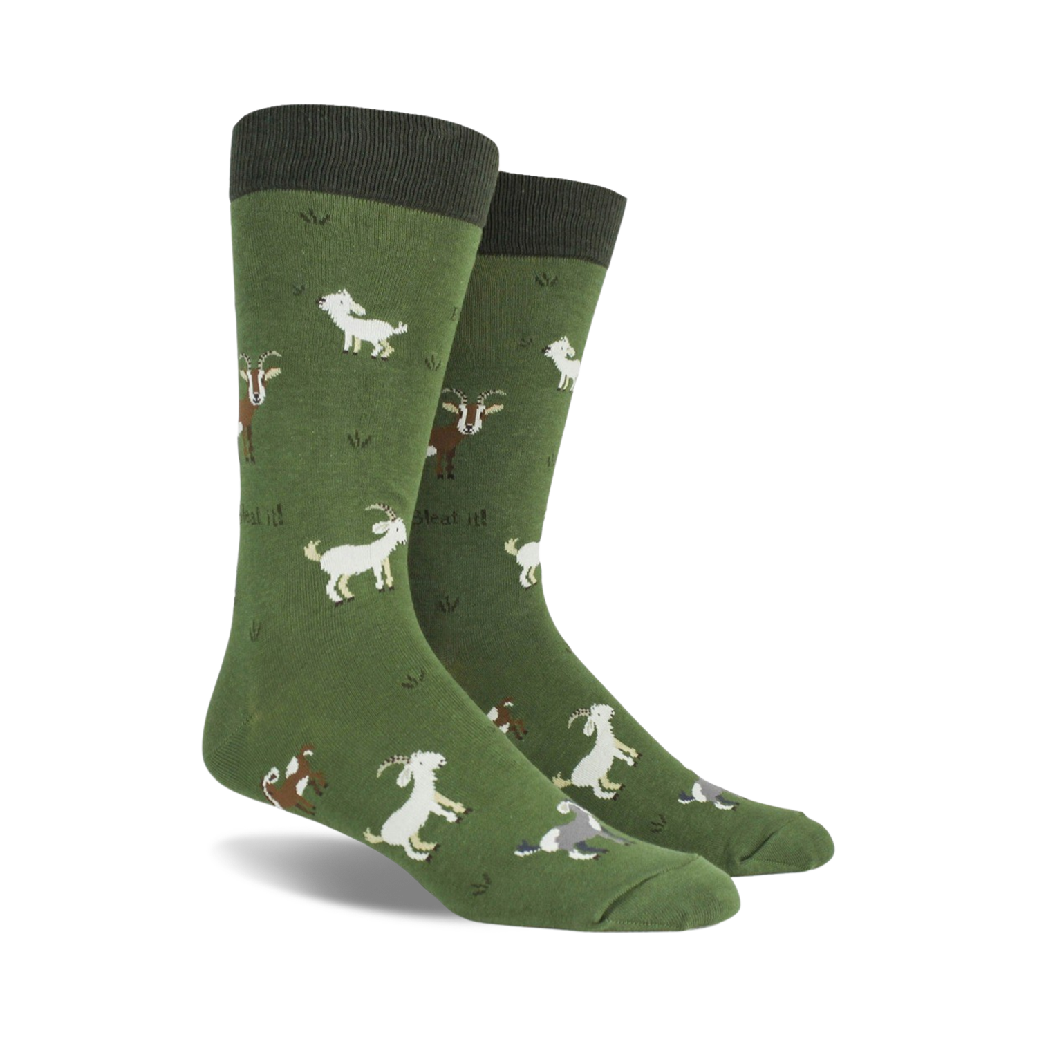 Let's face it, we all love a cool, fun guy. And our goat crew socks are the GOAT of all cool, fun socks. With their bright white, brown, and gray cartoon goats frolicking around your feet, these men's crew socks are guaranteed to make you the center of attention- in a good way. Literally putting the "great" in greatest of all time, your feet will be the envy of all, even more than that kid who got an actual goat for his birthday. The real question is, will your feet like them more than you do?