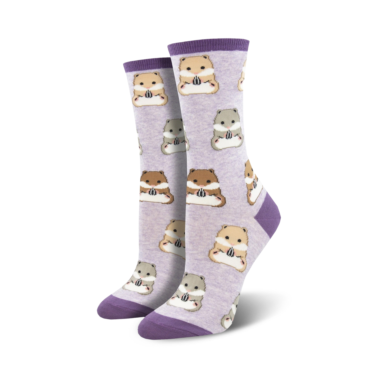 These Going Ham socks are as stuffed with fun as these purple cartoon hamsters are with sunflower seeds. They're a perfect present for any hamster or pun lover in your life. Next time you're feeling down, go ham-ster and put a pair of these crew socks on!