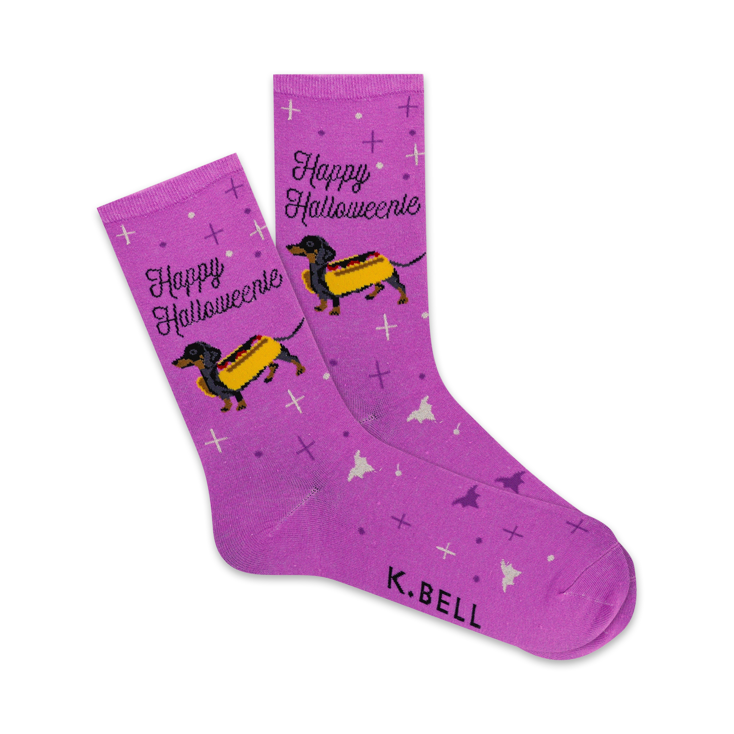 Who says a Halloweenie can't be a weenie? These spooktacular socks feature a bunch of black dachshunds dressed up as hotdogs. It's a print so cute and fun, you'll want to sink your teeth into them! The paw-fect choice for Halloween, dress these pups up with your favorite costume and treats and you'll be the top dog in town!