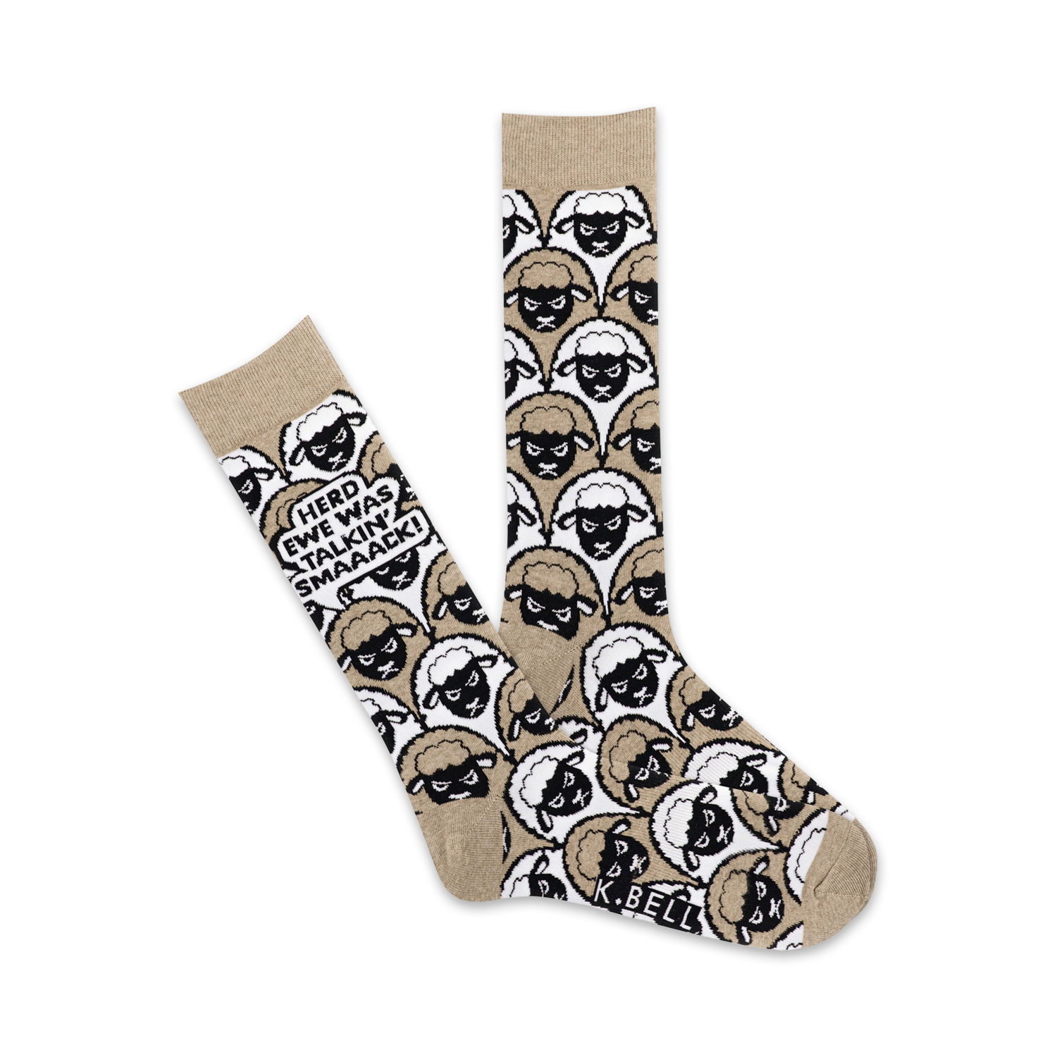 Baaa-rmy socks with a witty twist! Introducing our "Herd Ewe Was Talkin' Smaaack!" crew socks, the perfect pick for the sassy sheep lover. Featuring a grid of black sheep with hilarious facial expressions, these socks will have you cracking jokes and turning heads. They're like a woolly comedy show for your feet! Made for our fabulous men, these socks remind us that even sheep can talk trash! Get your flock together and strut your stuff in these baaa-d boys!