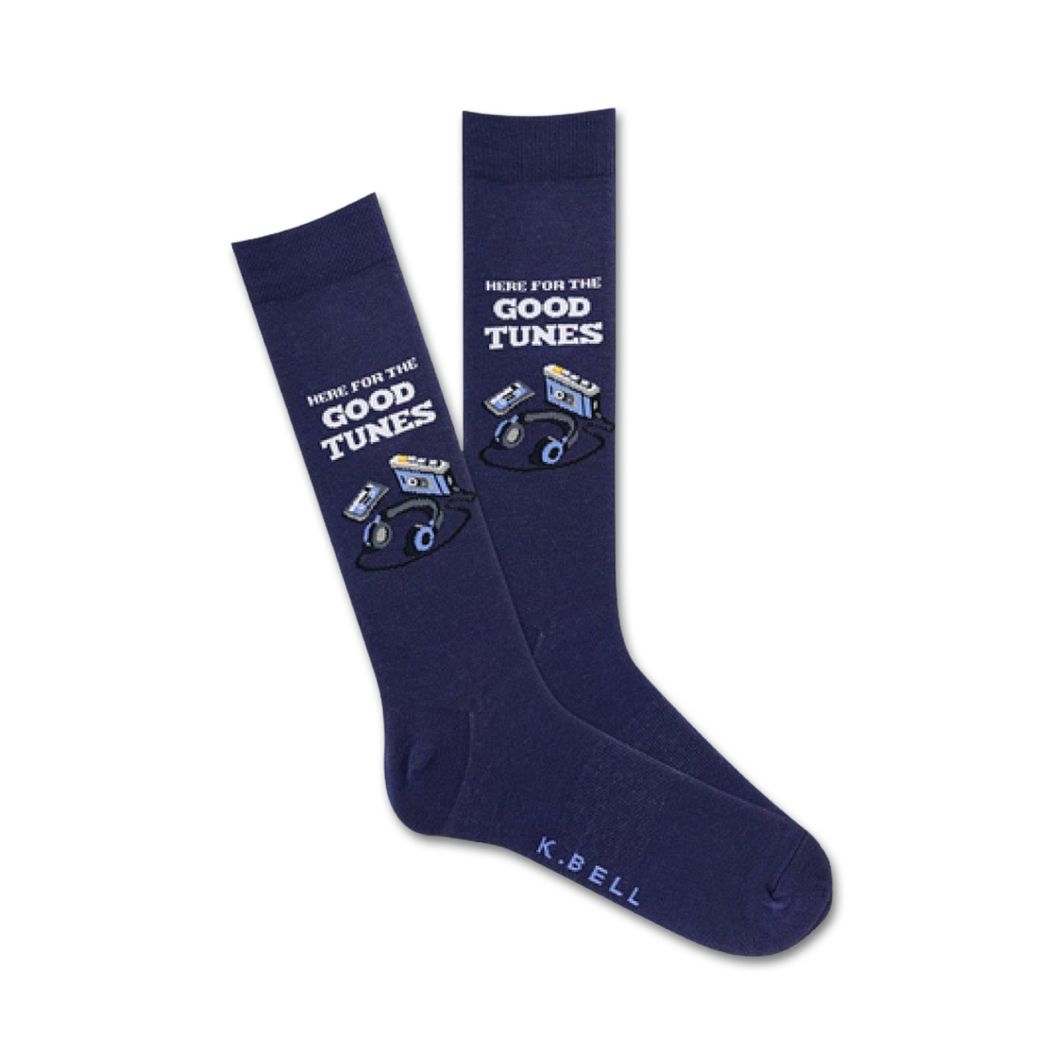 There's a 'tape' you when you wear these electric blue socks emblazoned with cassette tape designs that'll make you want to break out some tubular moves. They're a reminder that the good tunes will always be there for you, whether you're rocking out at a concert or just chilling at home. And if someone asks you what the deal is with your socks, tell them you're just 'Here for the Good Tunes.'