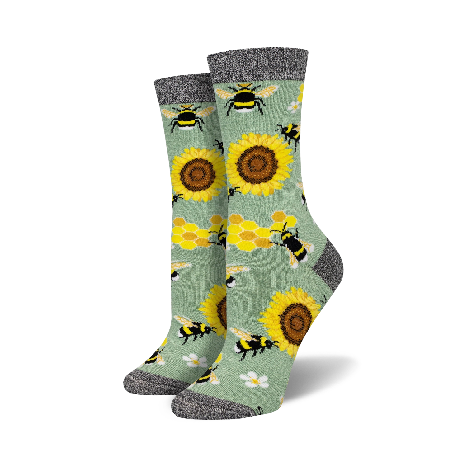 Buzzing with style and blooming with happiness, these Honey In The Bank socks are a nature-inspired masterpiece. Picture this: sunflowers bask under the sun, bees buzz around in delight, and honeycomb weaves it all together in a captivating tapestry of color. These crew socks will make it feel like you're walking through a field of sunshine, so put on a pair and stride into a day filled with positive vibes. Who knows, you might even become a "bee-liever" in the power of a fun sock!