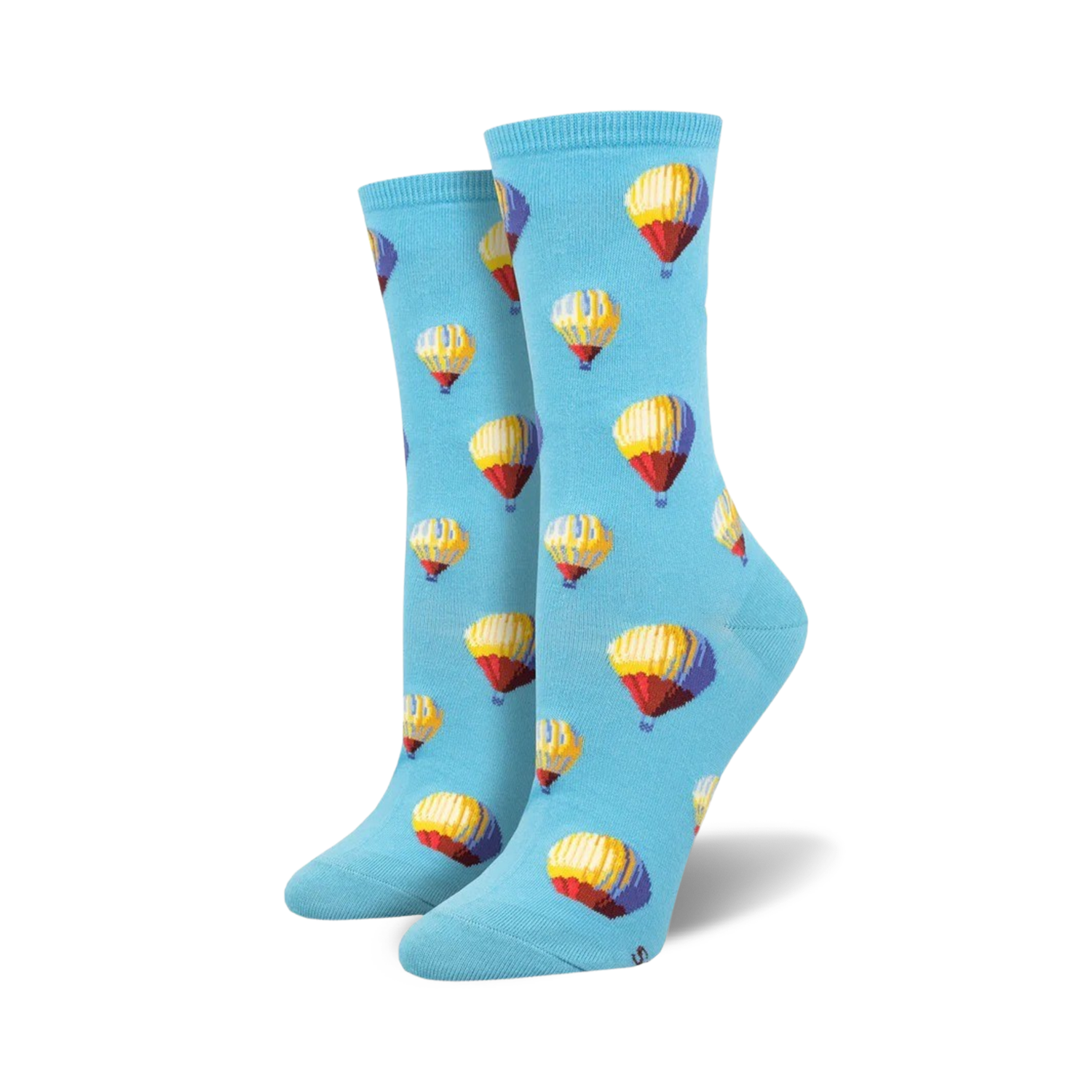 Own the skies and let your feet soar with our light blue Hot Air socks featuring a burst of color with hot air balloons. Perfect for the next time you are feeling "up up and away!" These socks will elevate your style to new heights!